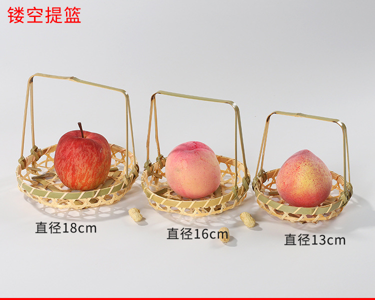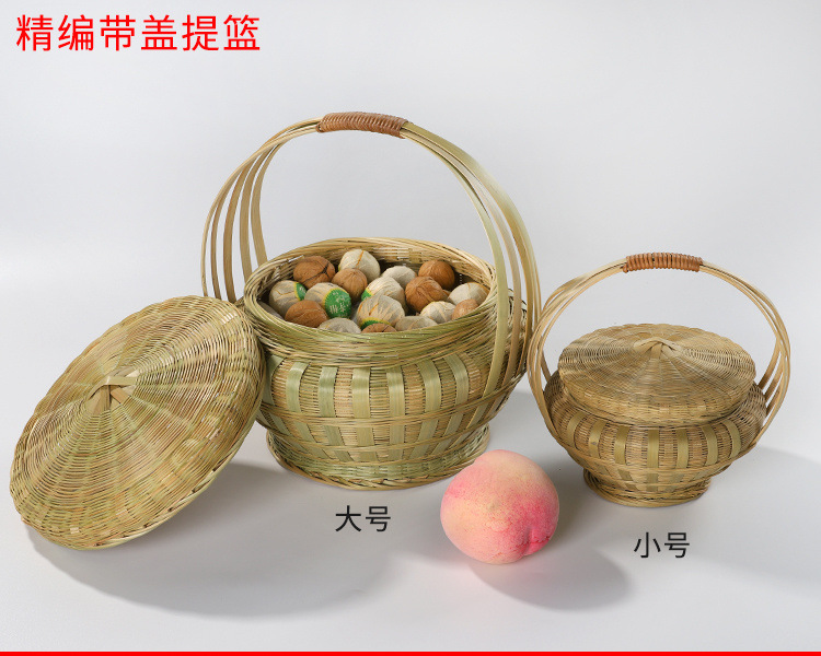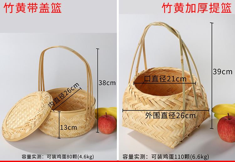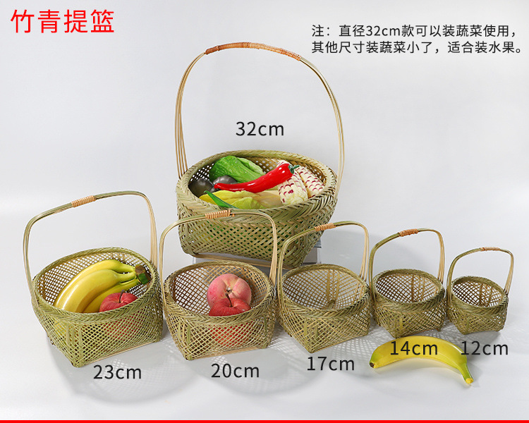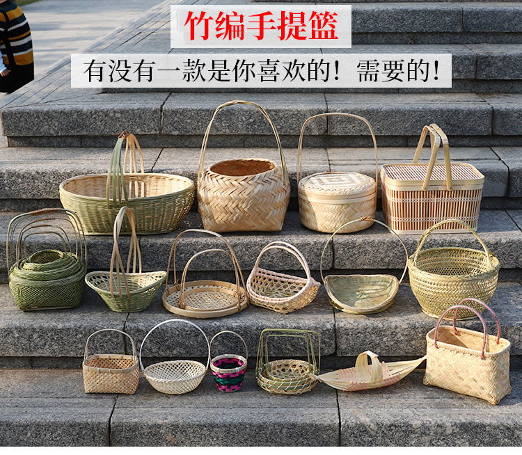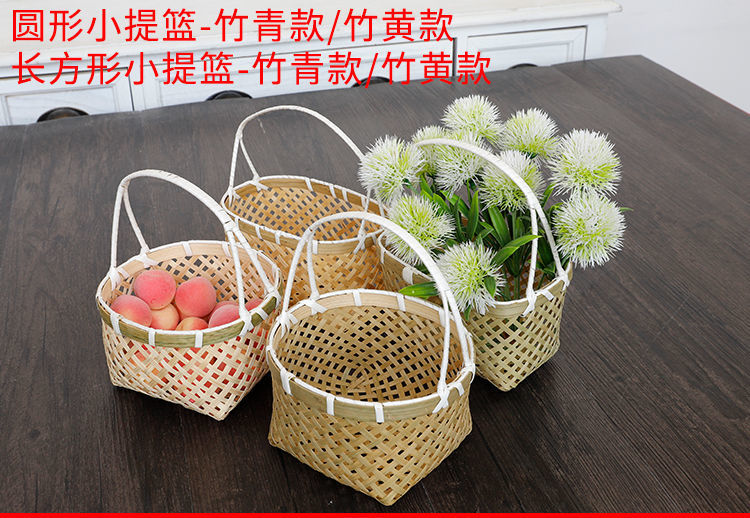 SDdLUP2zJcACydxnT2h+NGWFJKI=ハンドル付き野菜バスケットスナックバスケット竹バスケットミニフルーツバスケット家庭用ラウンドハンド