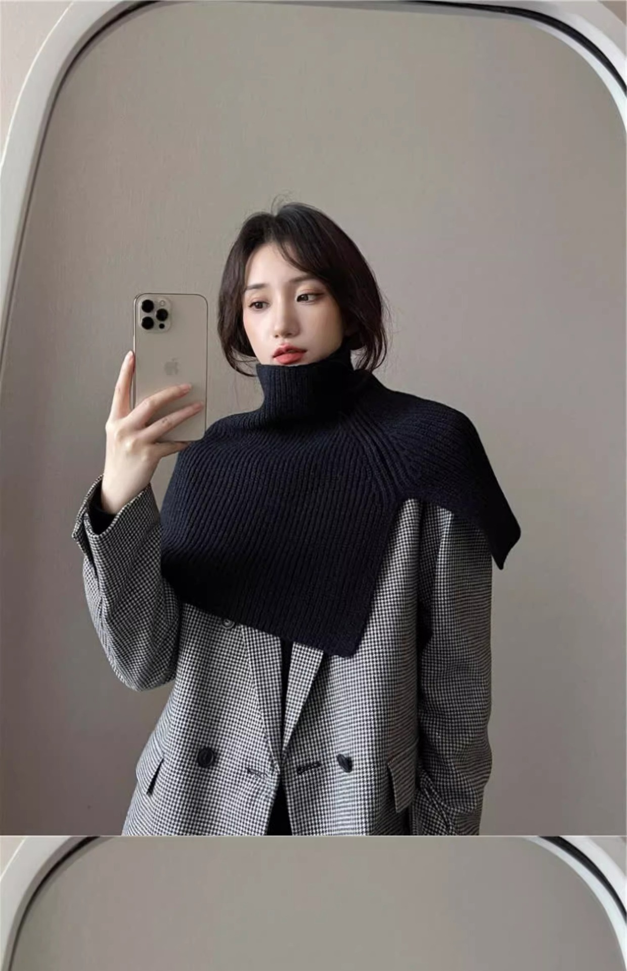 高领披肩女冬季开叉围脖保暖套头针织围巾护颈防寒毛线脖套韩版