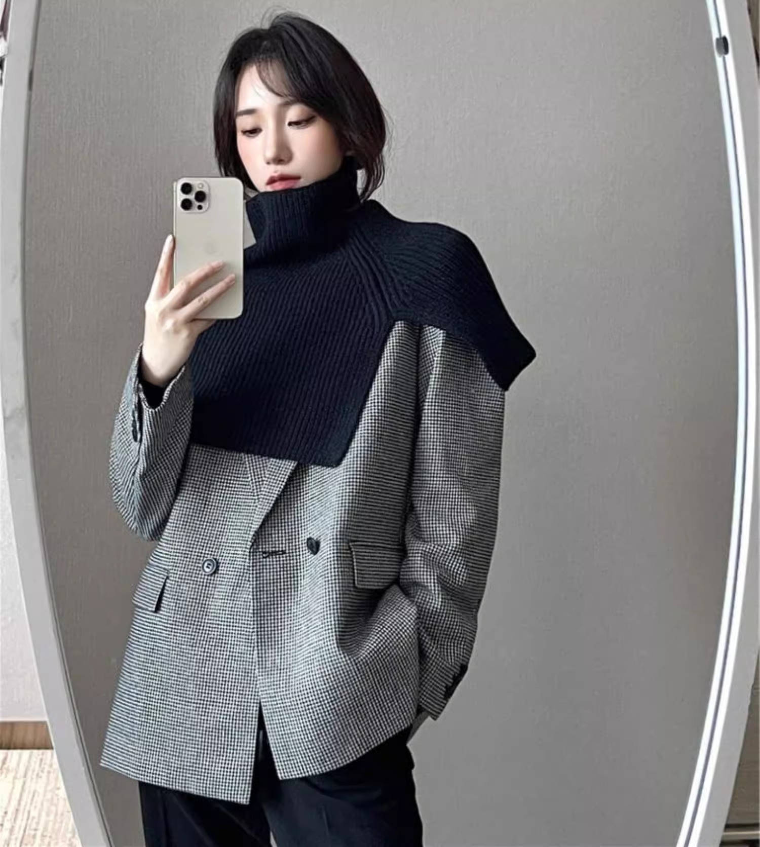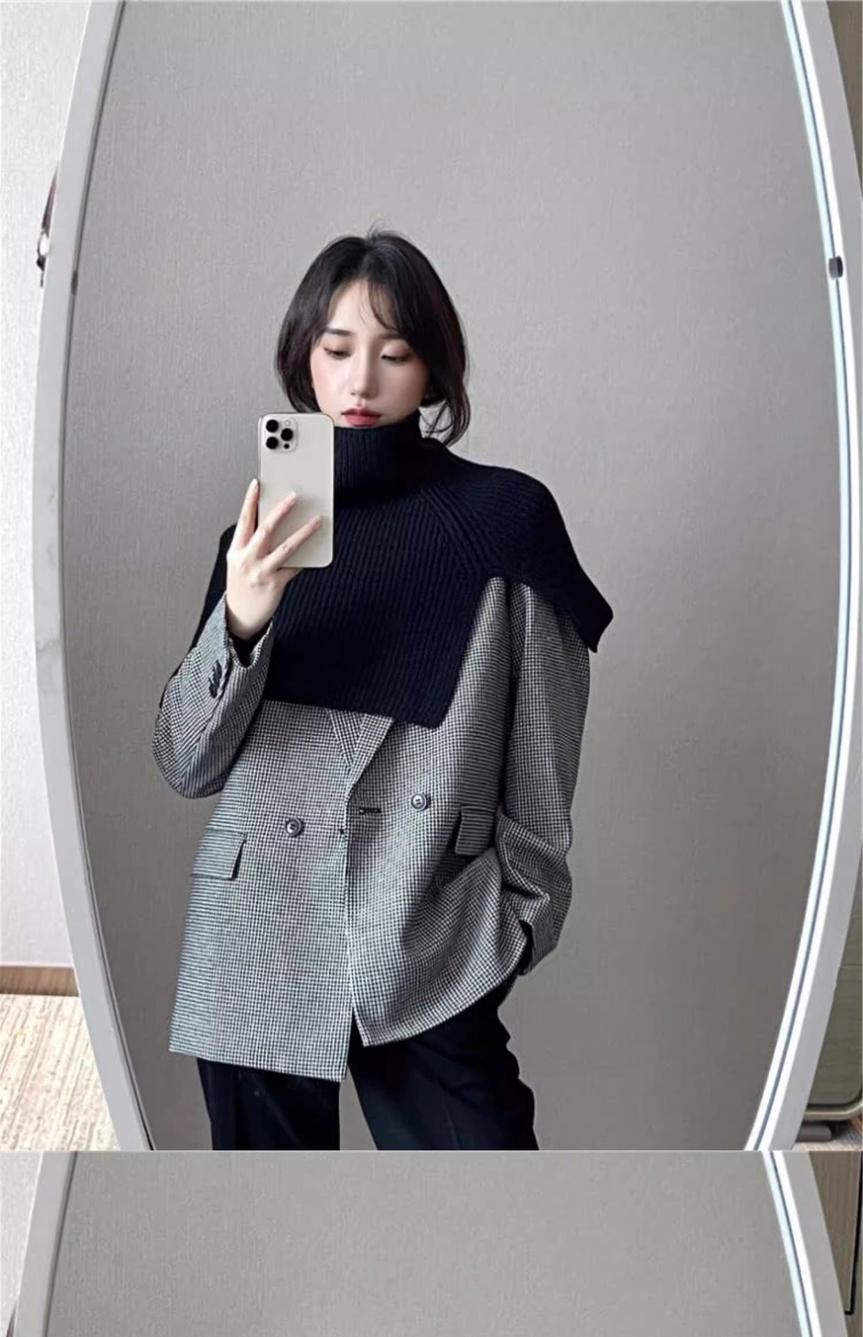 新型の韓国系の雰囲気感のマフラーの女性は冬の外で保温して首を囲む女性のニットの首のカバーの偽の襟のマントを掛けます。