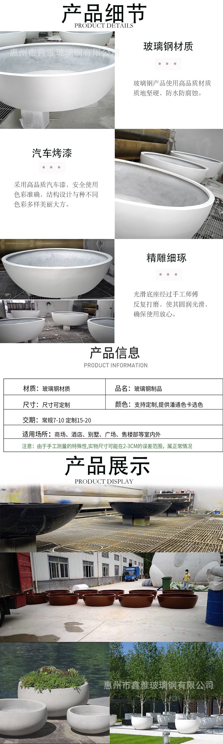 屋外円形斜口ガラス鋼植木鉢大型デパートホテル公園緑化栽培広場花瓶置物