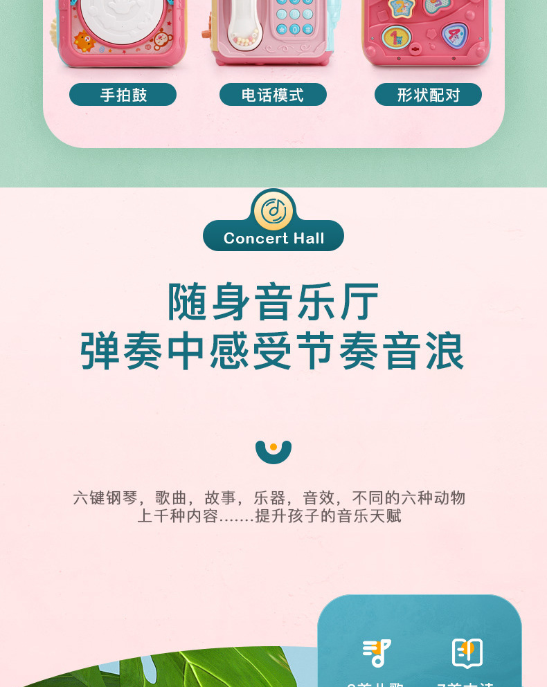 多機能q萌六面体益智玩具早教手拍鼓会は物語を話して歌う知育赤ちゃん六面鼓