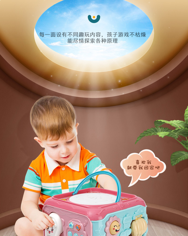 婴儿手拍鼓多面体拍拍鼓宝宝益智盒儿童早教六面体宝宝玩具0-3岁