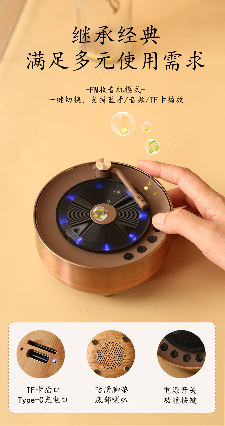 X19アロマブラックゴムbluetoothスピーカー寝室リビング雰囲気高音質レコードオフィスレトロbluetoothオーディオ