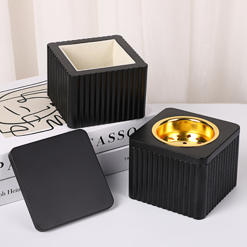 クロスボーダーレトロ縦模様無垢材香炉アラビアンスタイルシンプルなアロマセラピー炉蓋付きB&B屋内正方形白檀炉