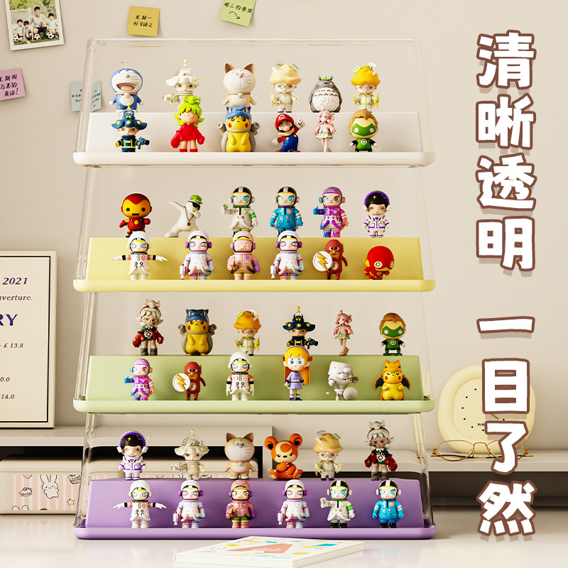 ブラインドボックス収納ディスプレイスタンドバブルマートディスプレイボックスデスクトップ透明フィギュア棚プラスチック人形防塵キャビネット