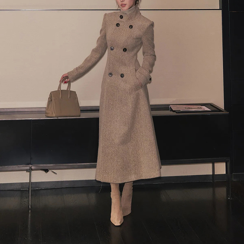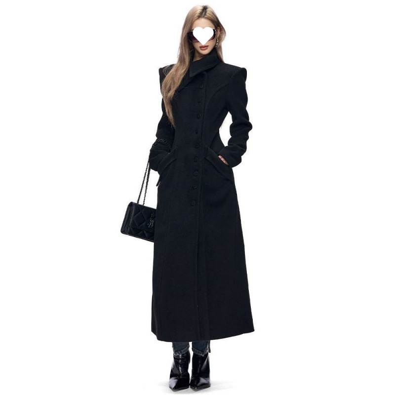 气质复古优雅高级感立领长款毛呢外套女秋冬季百搭显瘦呢子大衣潮