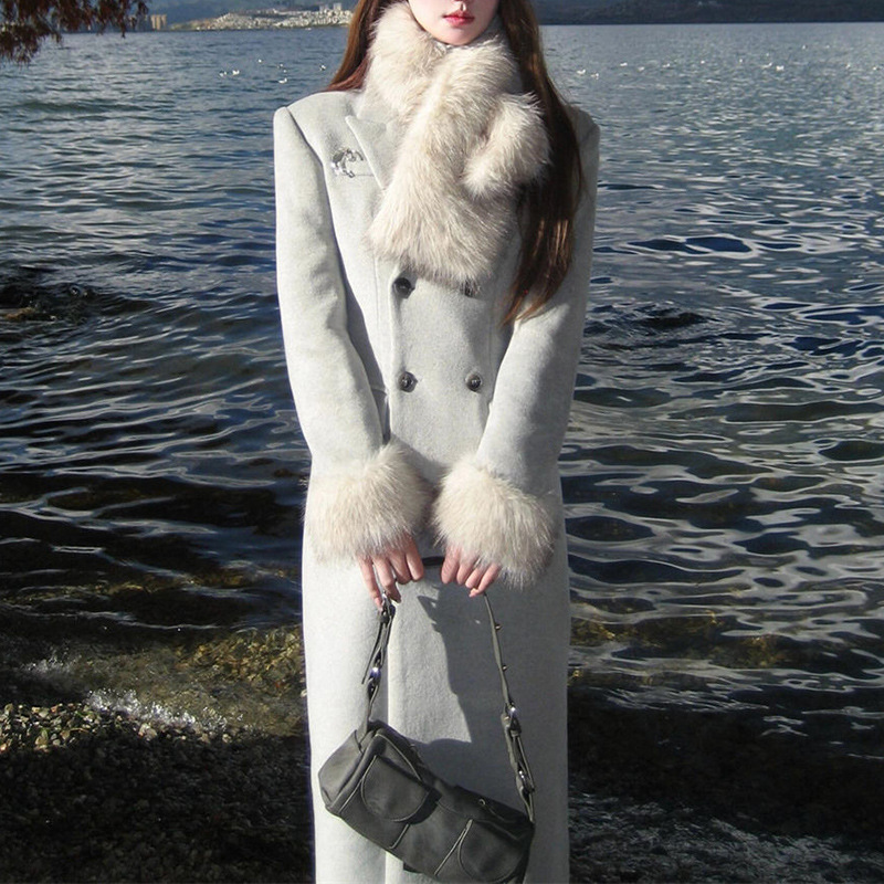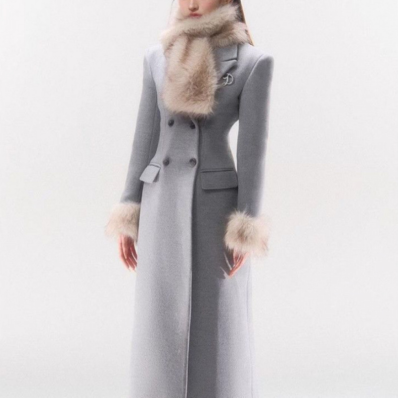 2025新款时尚感大毛领温柔气质千金长款收腰双面毛呢大衣