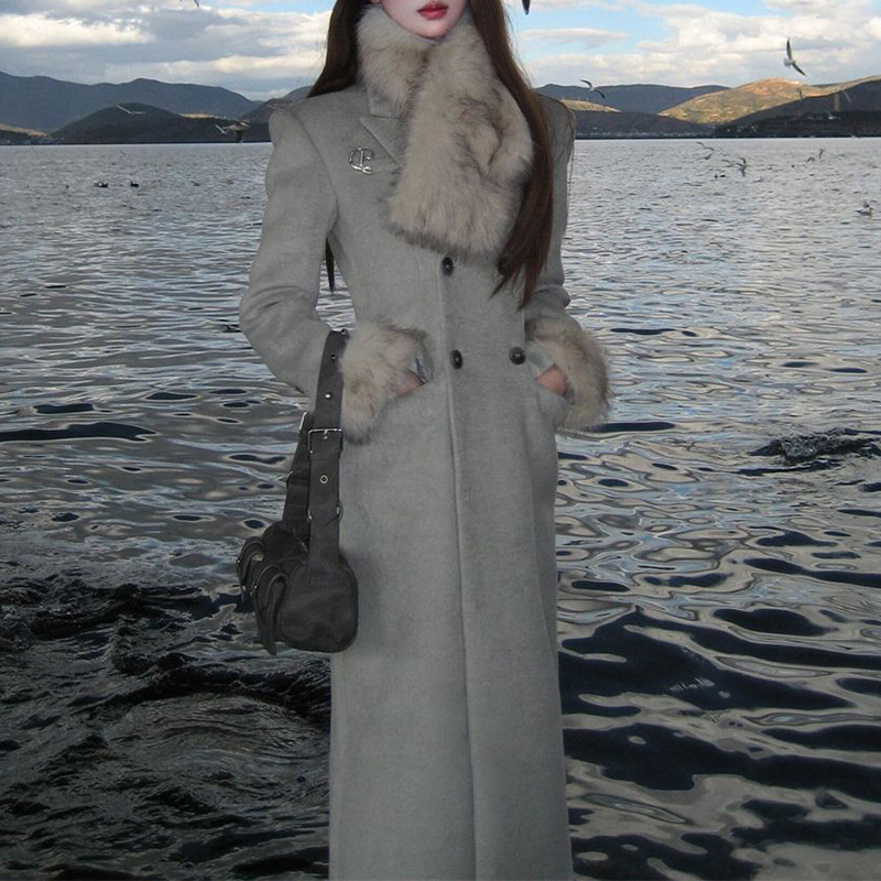 韓国風のファッショナブルなウールコート、秋冬の女性用、セレブデザイン、厚くて暖かい、ロングウールコート、トレンディ