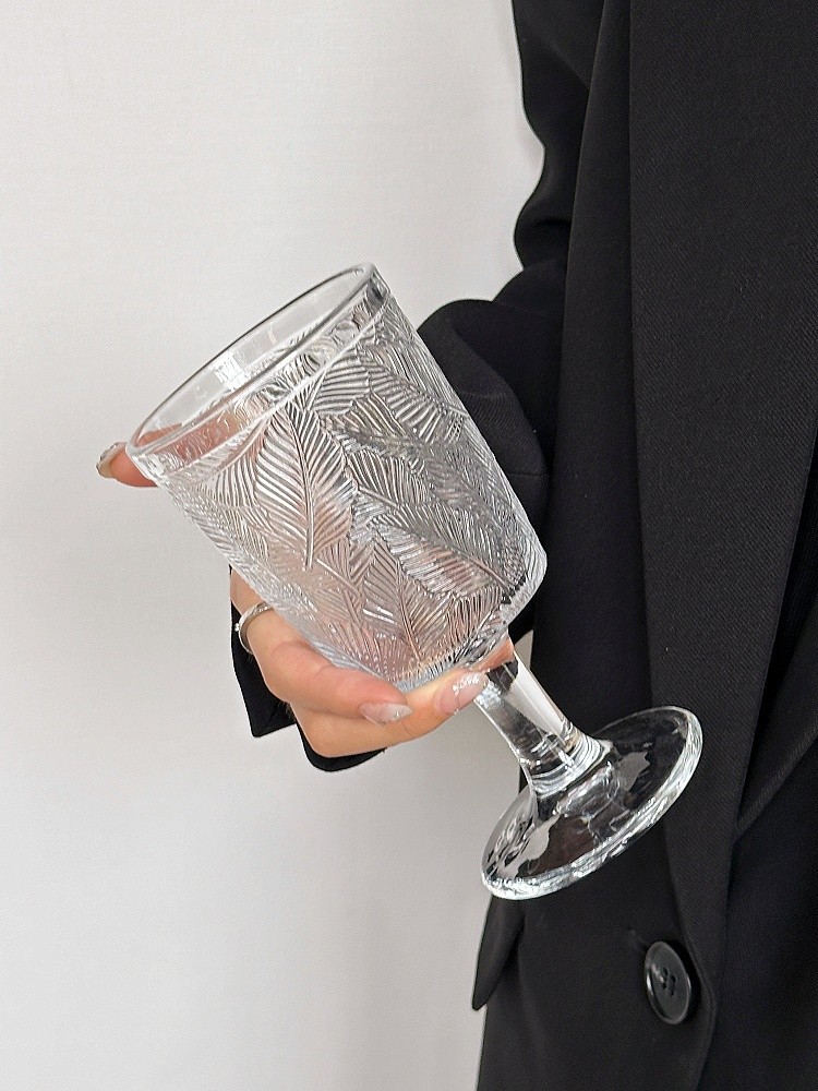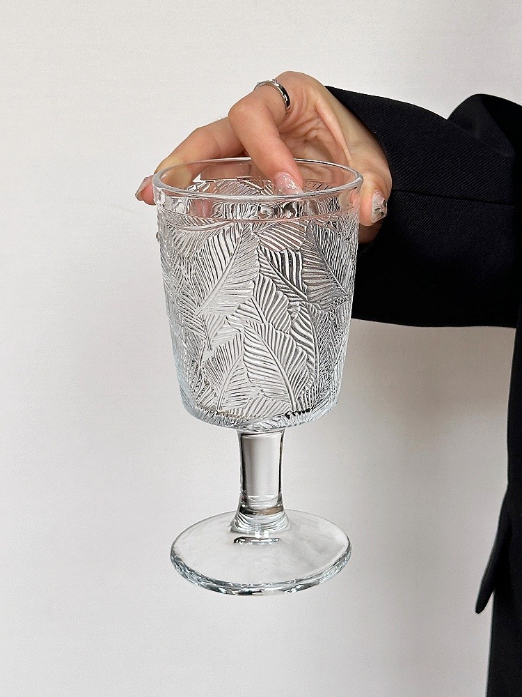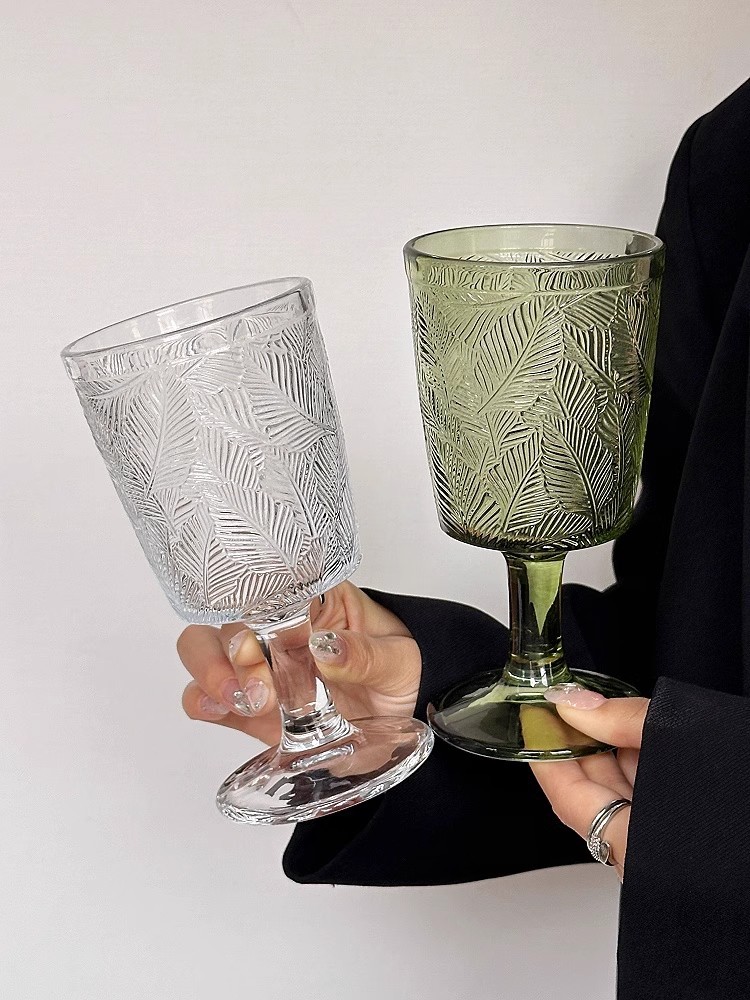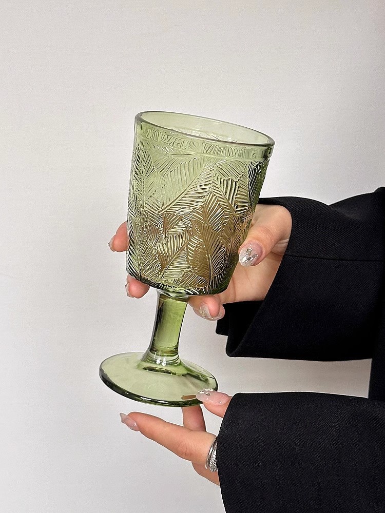 ~浮雕中古绿叶高脚玻璃杯洋酒杯红酒杯 敲好看 集美们 推荐入手~