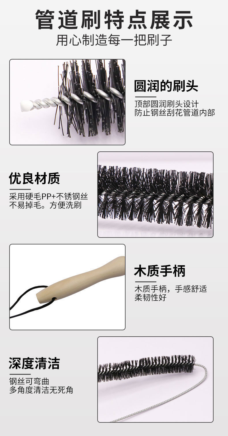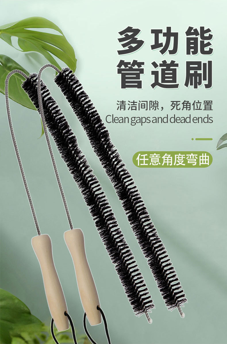 国境を越えた家庭用洗濯機クリーニングブラシパイプ下水道クリーニングと浚渫ストリップ木製ハンドルスクリーン窓クリーニングブラシ