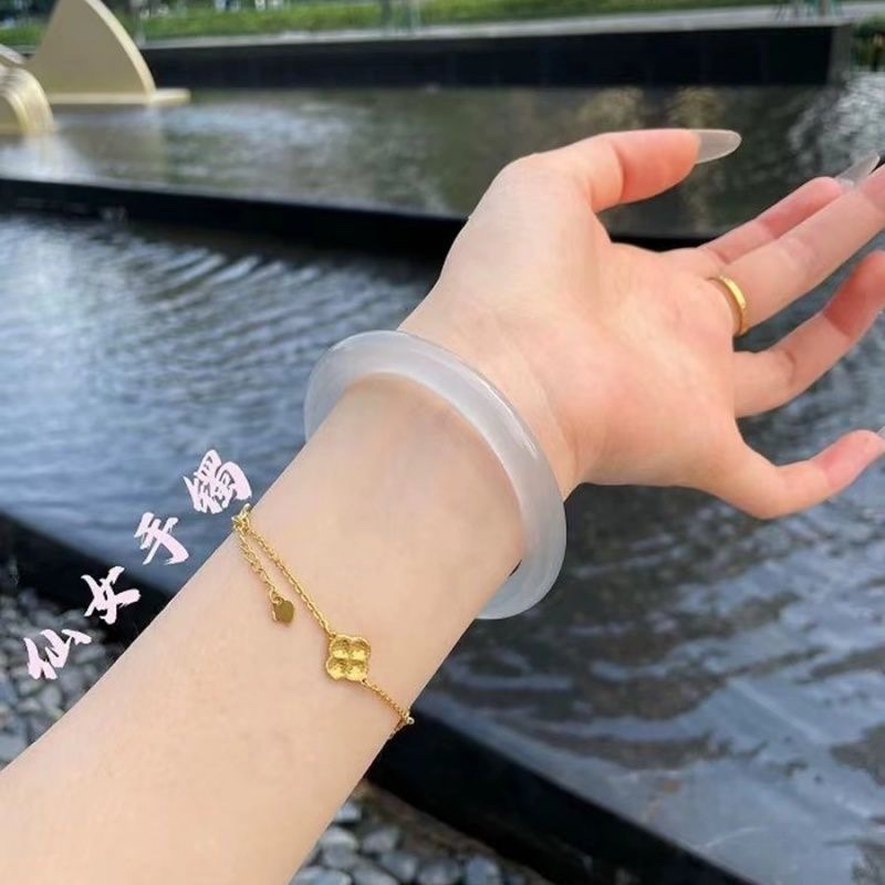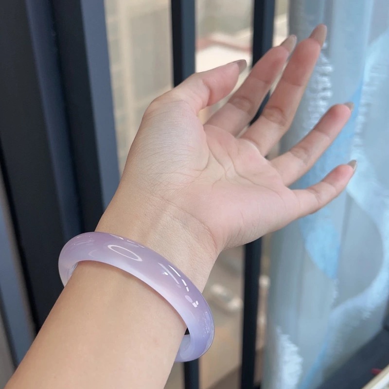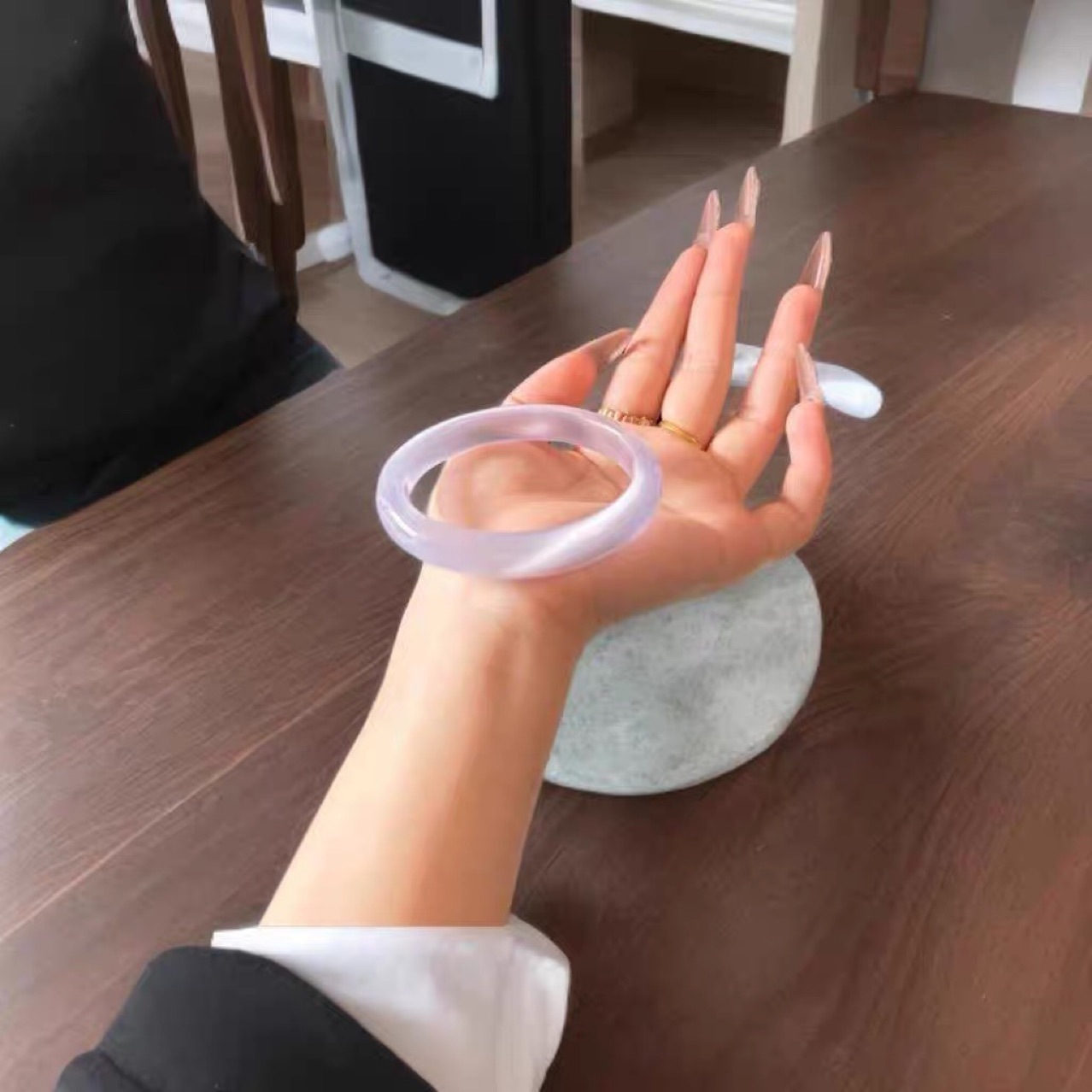 跨境热卖高冰马料天然浅香槟玉髓冰透玛瑙玉镯女镯子冰种白月光荔