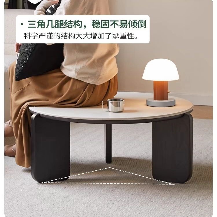 圆形轻奢实木黑色岩板茶几简约现代小户型家用北欧客厅沙发组合,