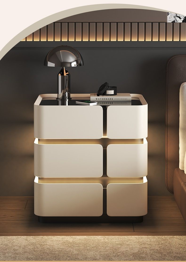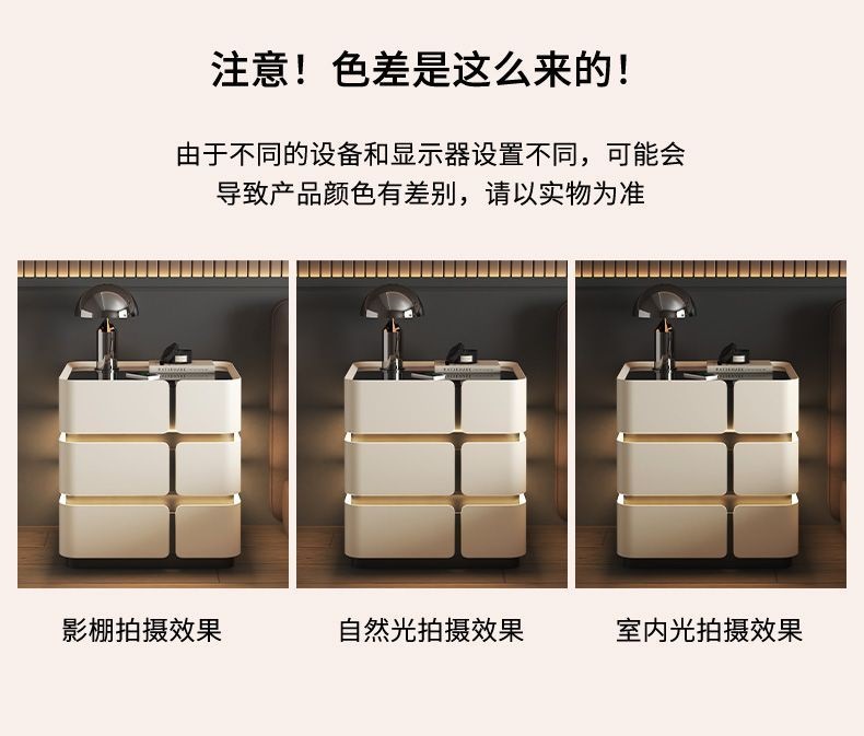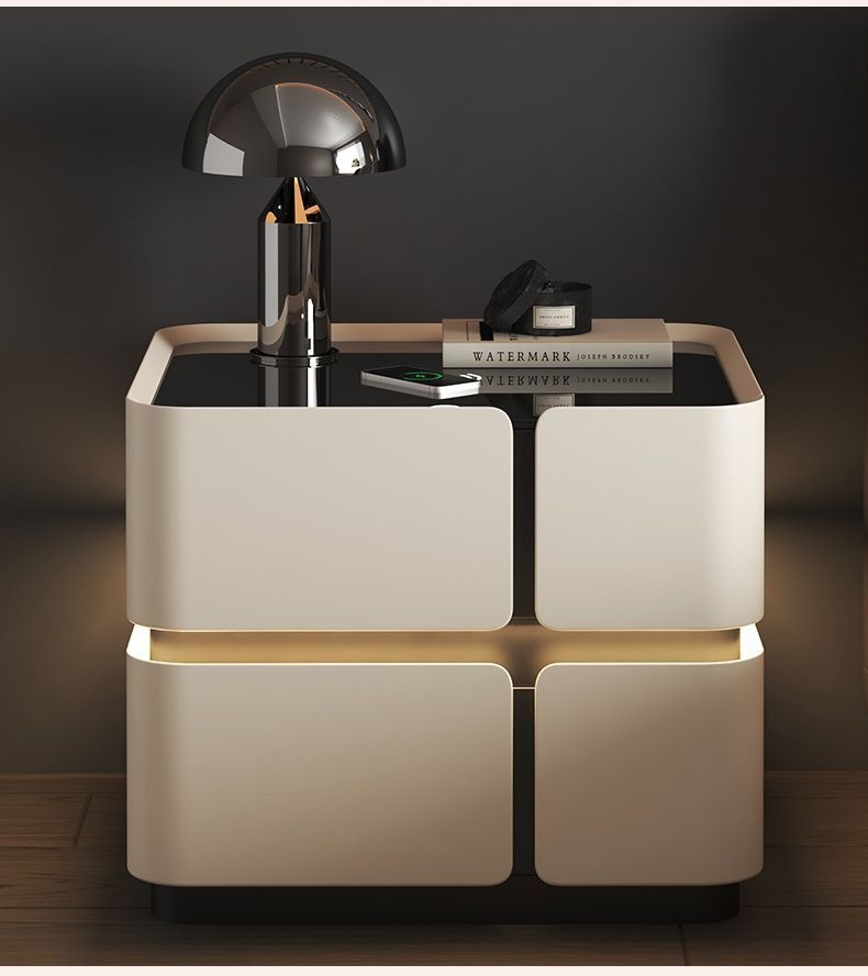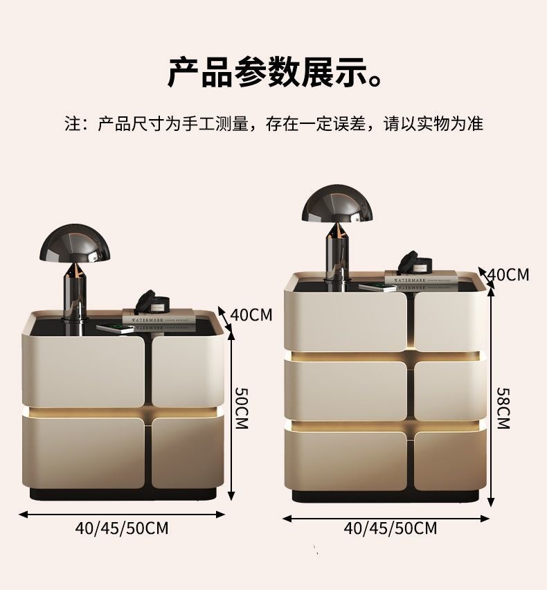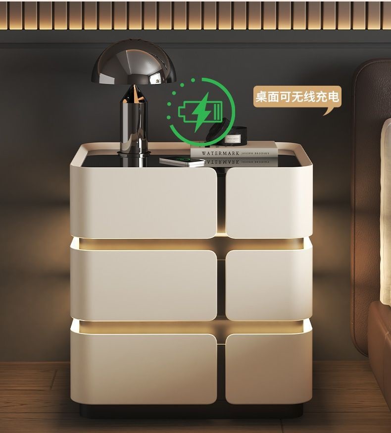 新しいスマートライトミニマリスト無垢材小型収納ベッドサイドテーブルベッドサイドキャビネットシンプルで軽い高級モダンなクリーム寝室