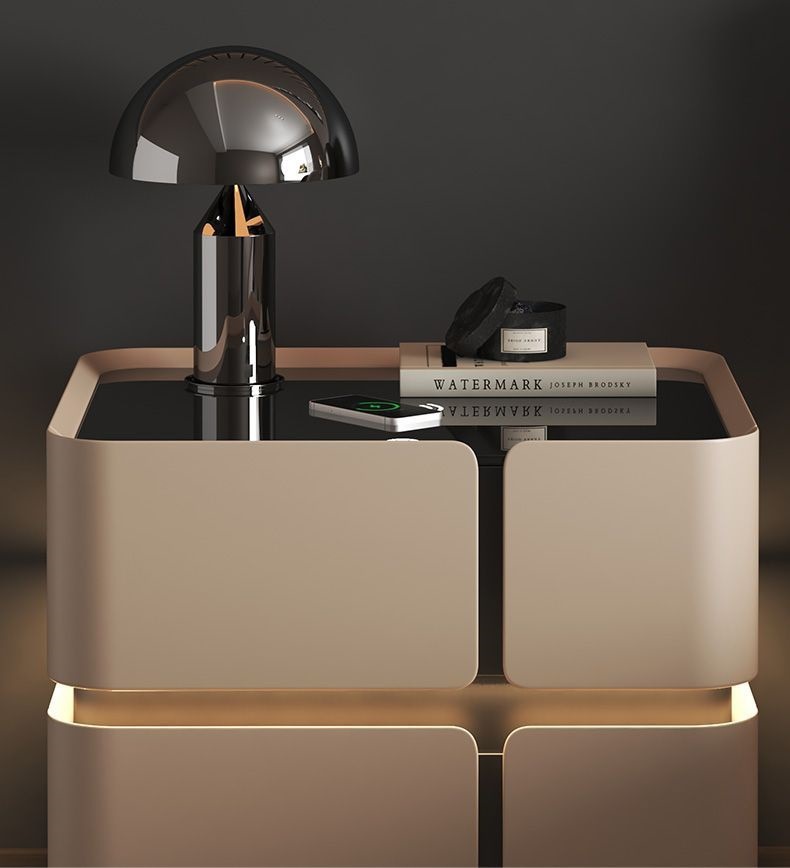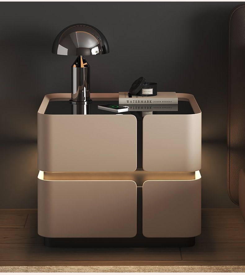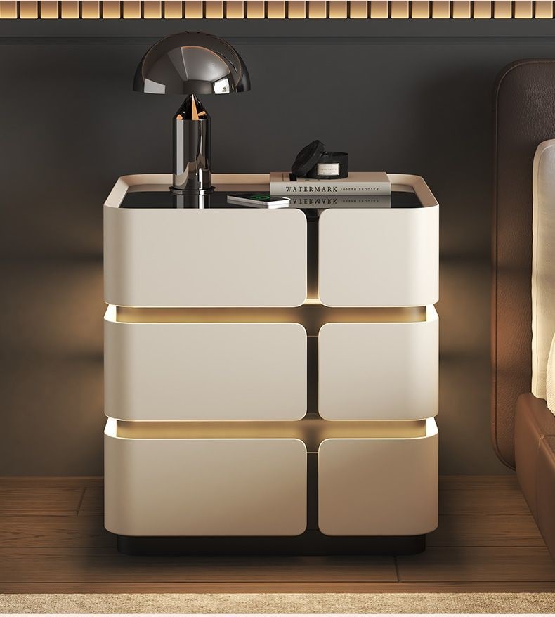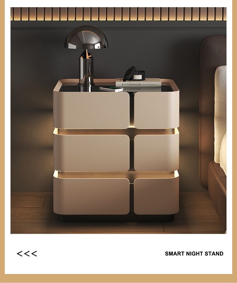 新しいスマートライトミニマリスト無垢材小型収納ベッドサイドテーブルベッドサイドキャビネットシンプルで軽い高級モダンなクリーム寝室