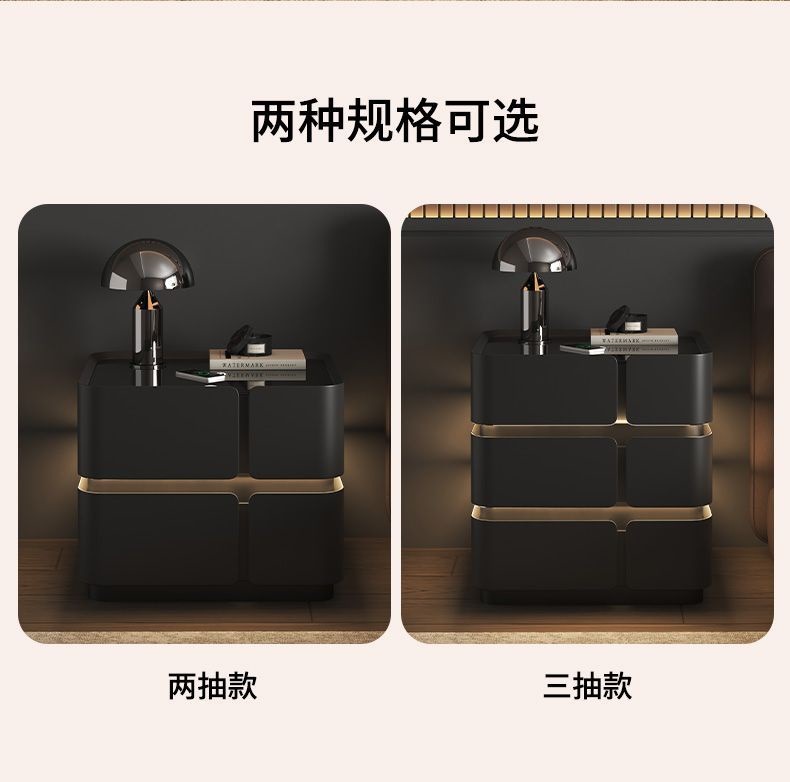 2025 新しいイタリアのライト高級無垢材ベッドサイドテーブル寝室ホームモダンシンプルなベッドサイド収納キャビネット完全装備