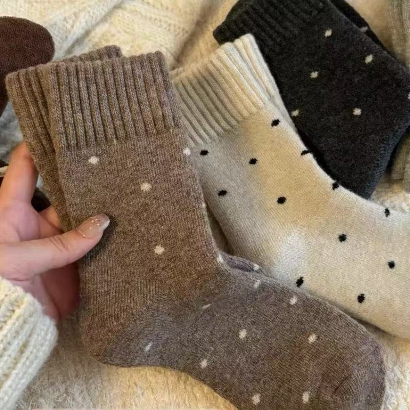 袜子女款保暖秋冬季加绒加厚新款波点毛圈中筒可爱百搭复古堆堆袜