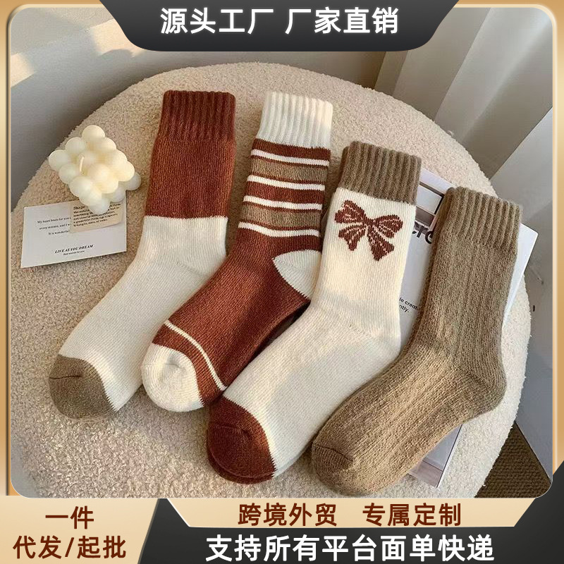 女性用靴下 秋冬用 保温性のある毛足の長い靴下 可愛い 日本風 冬用ミドル丈靴下 インスタ映え 外履きミドル丈靴下 卸売