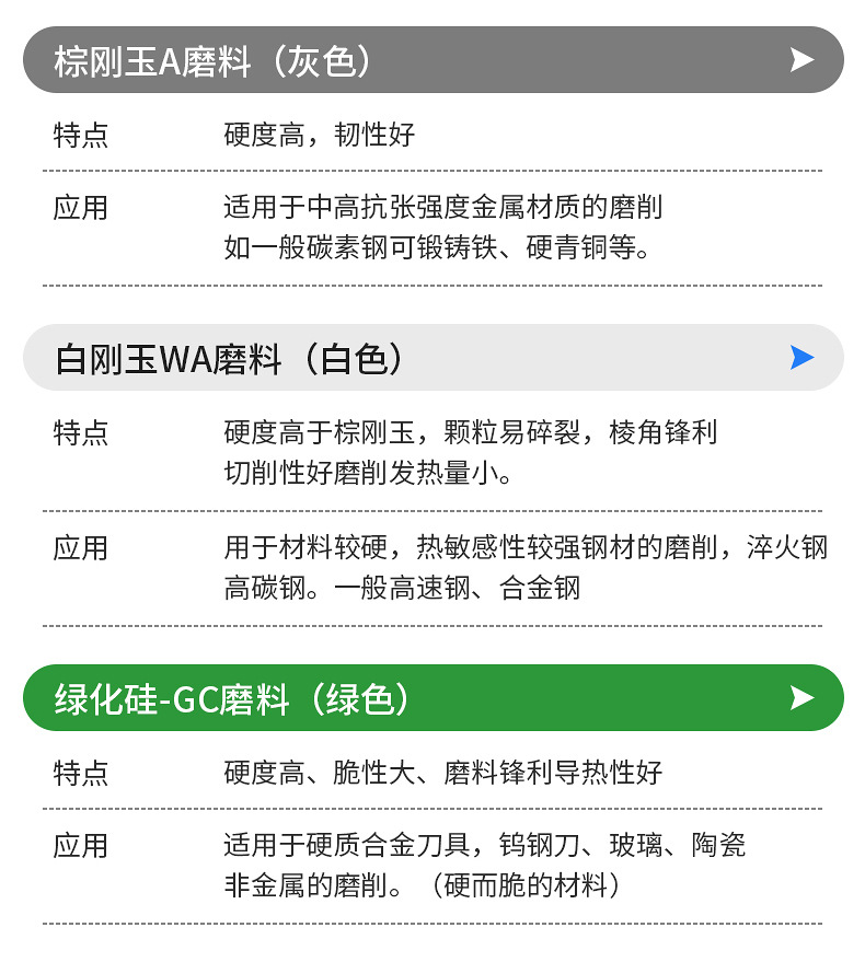 材料 ブラウンコランダム/ホワイトコランダム/グリーン炭化ケイ素