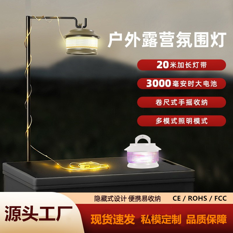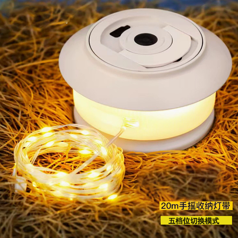 跨境新款营地露营卷尺灯 充电户外帐篷氛围灯七彩串灯带收纳盒
