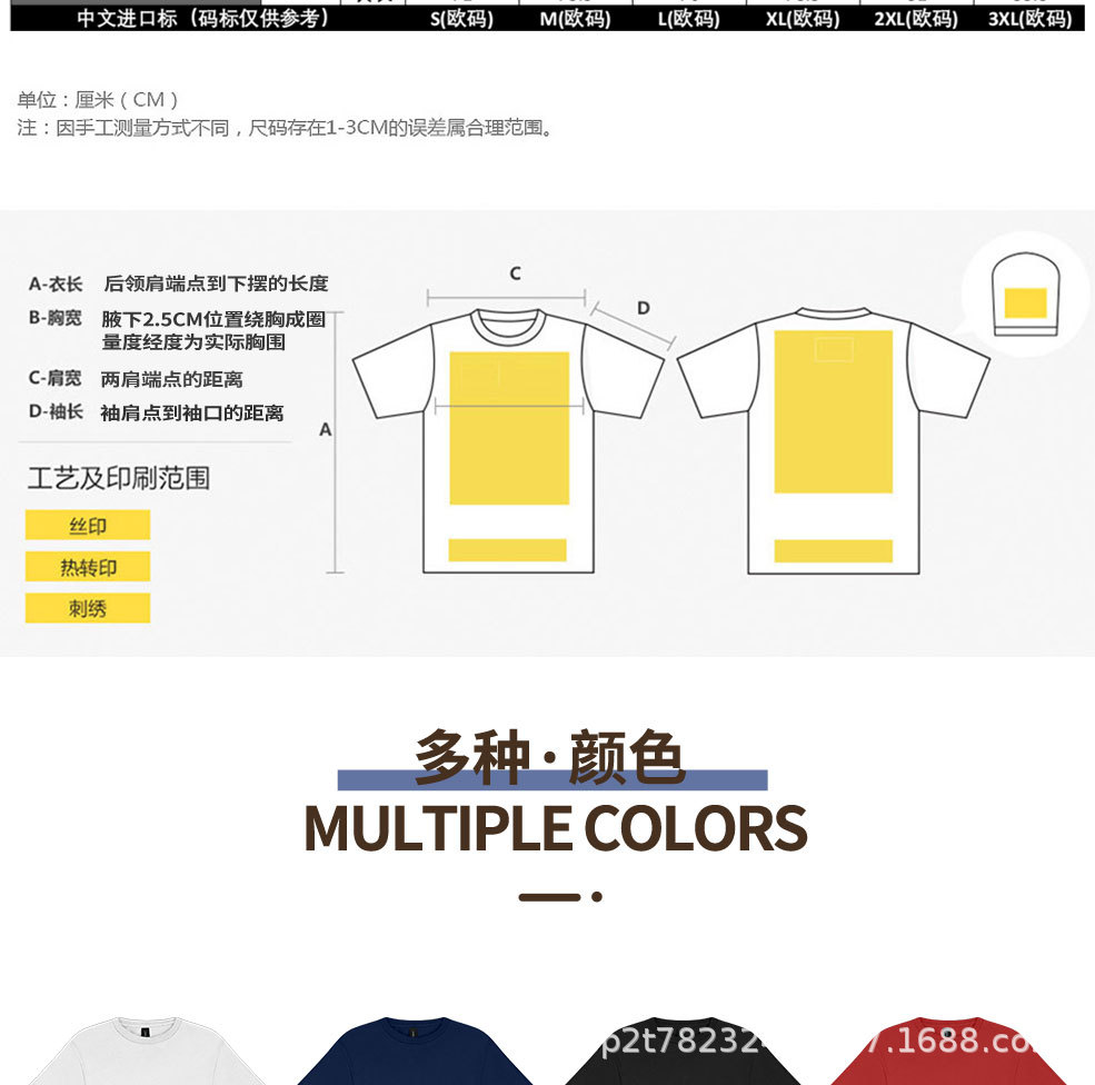 クロスボーダーヨーロッパサイズTシャツ150グラム純綿トレーサブルコットン無地半袖ラウンドネック会社服ロゴプリント