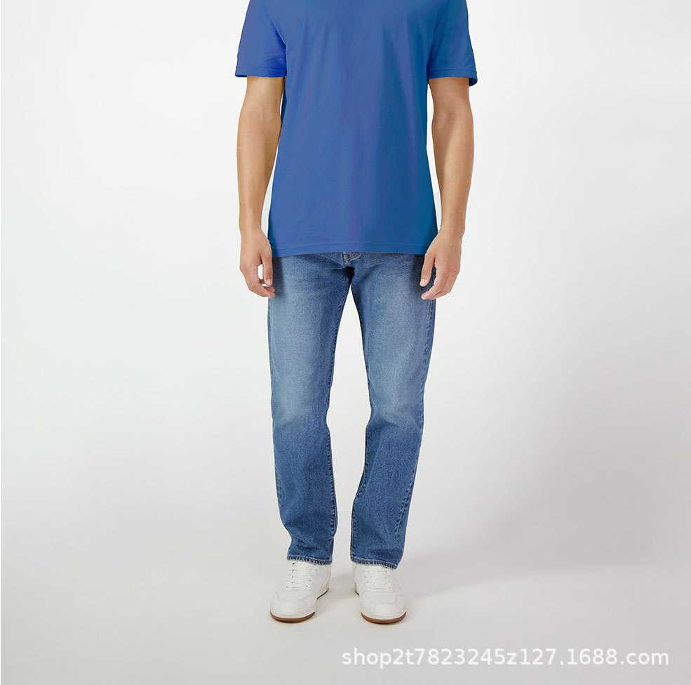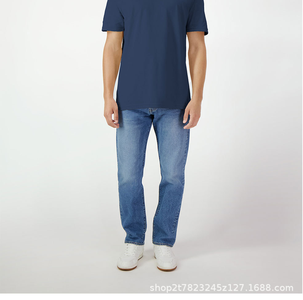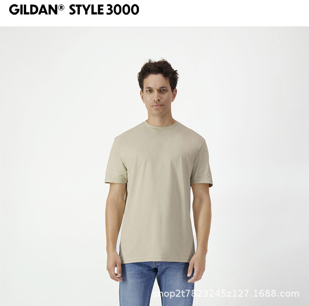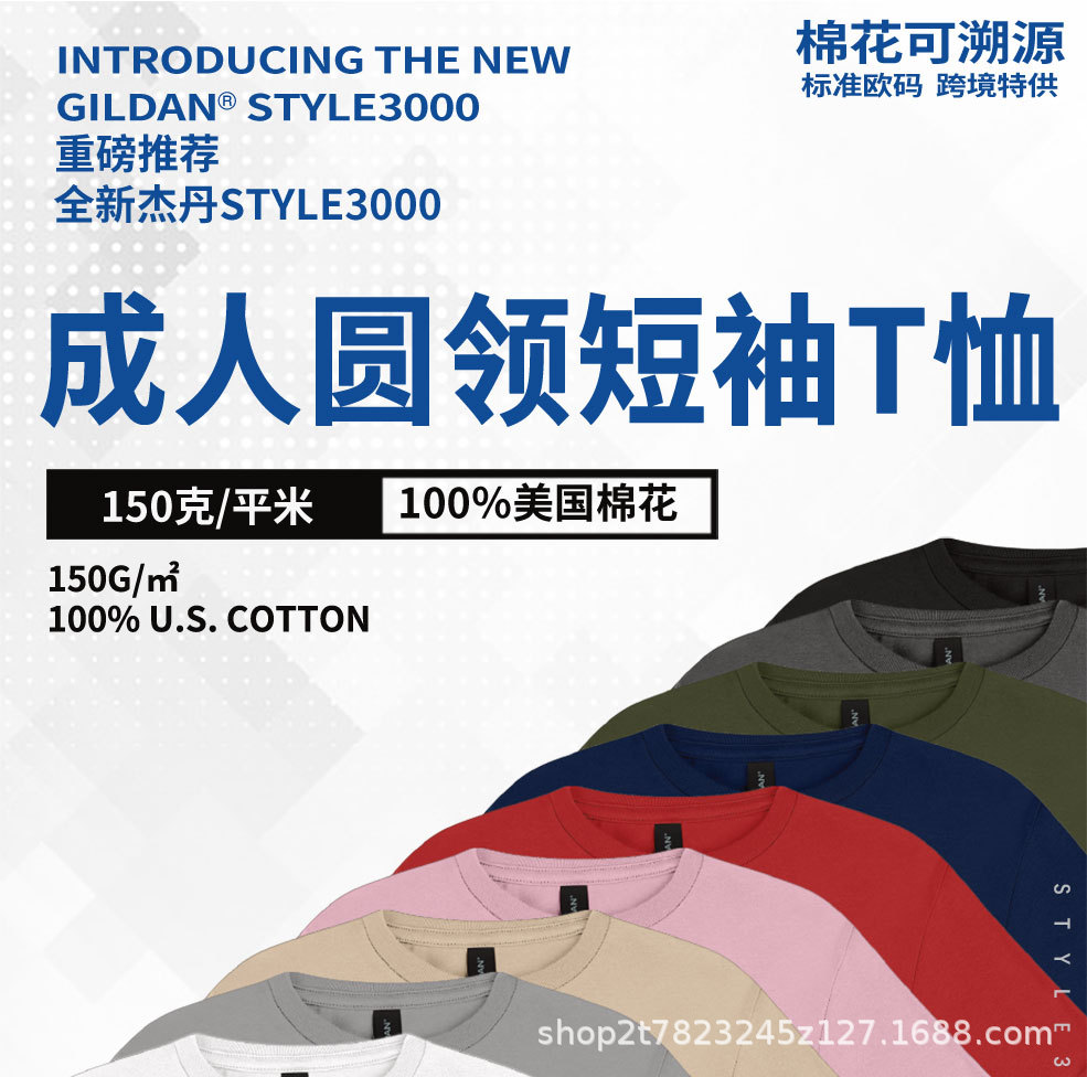 亚马逊跨境150克精梳纯棉圆领短袖T恤男纯色宽松潮牌工作服印花