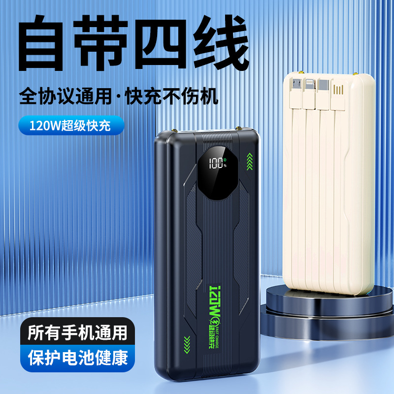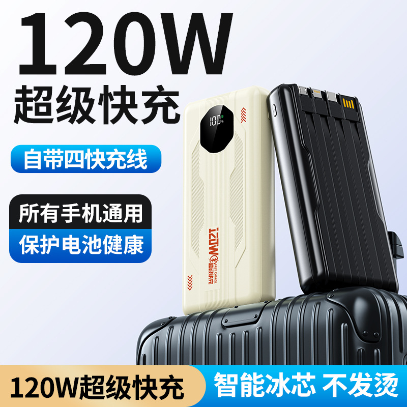 内蔵ケーブル付き120W急速充電モバイルバッテリー20000mAh、ギフト用、ロゴ印刷可能、電量表示、急速充電