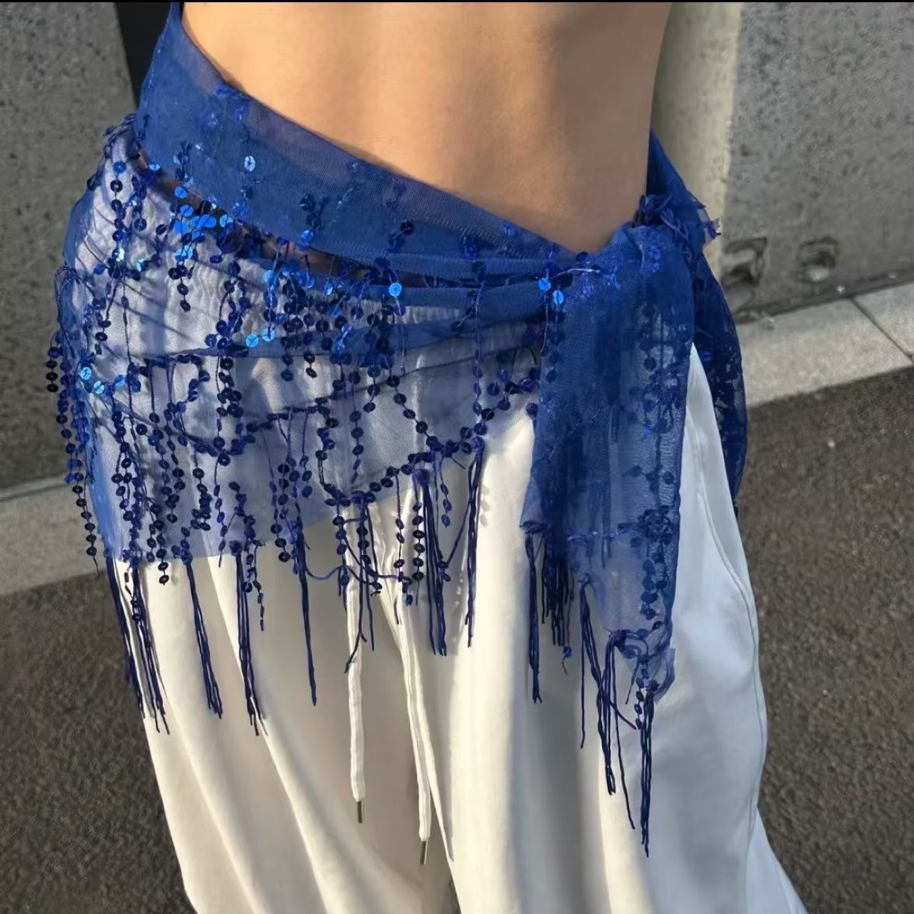 新款网红爵士舞臀巾街舞腰链臀巾配饰亮片三角巾流苏腰带腰巾百搭