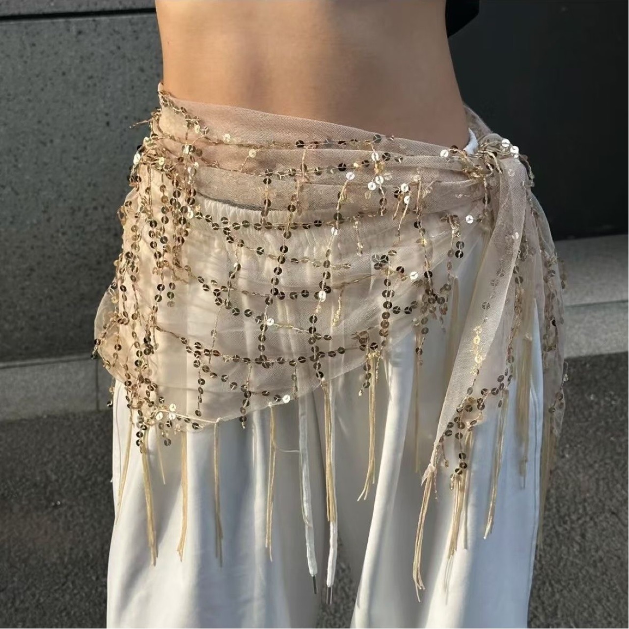 ハロウィーンの新しいベリーダンス腰チェーンインドダンスヒップタオルボヘミアンショー腰タオルスパンコール腰チェーン