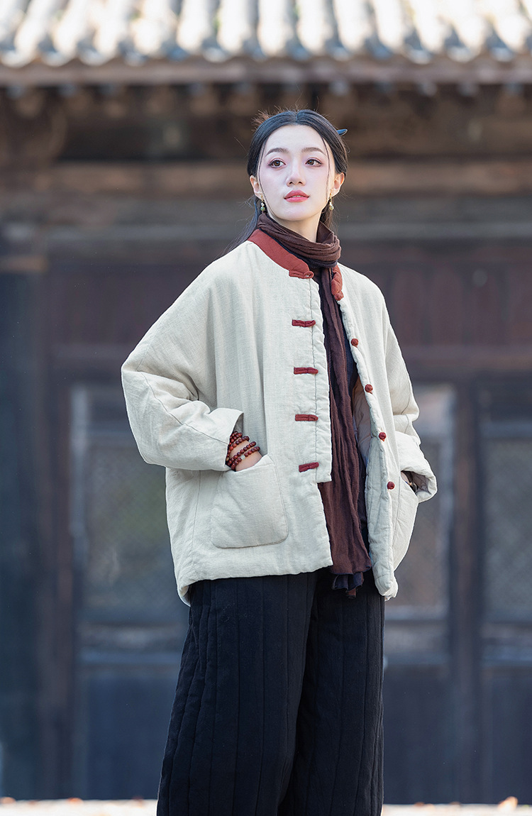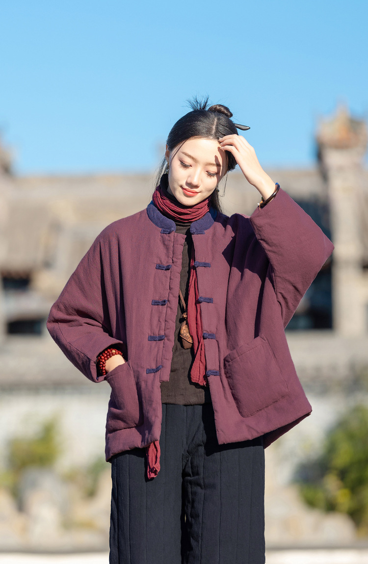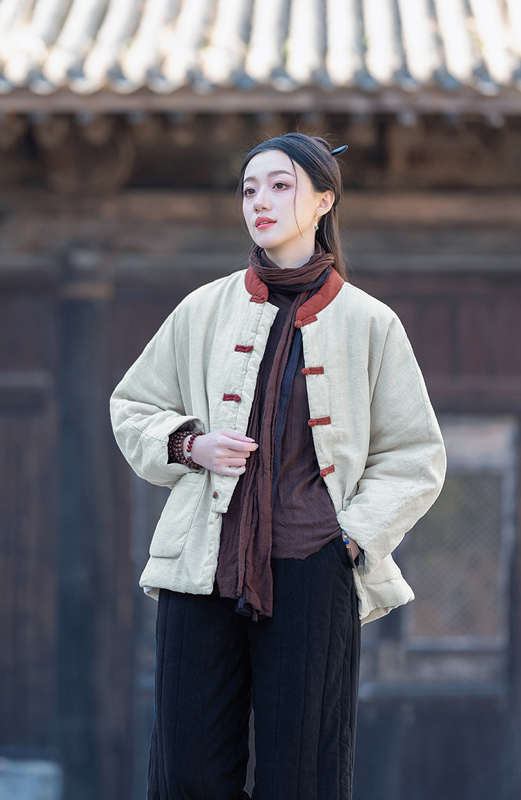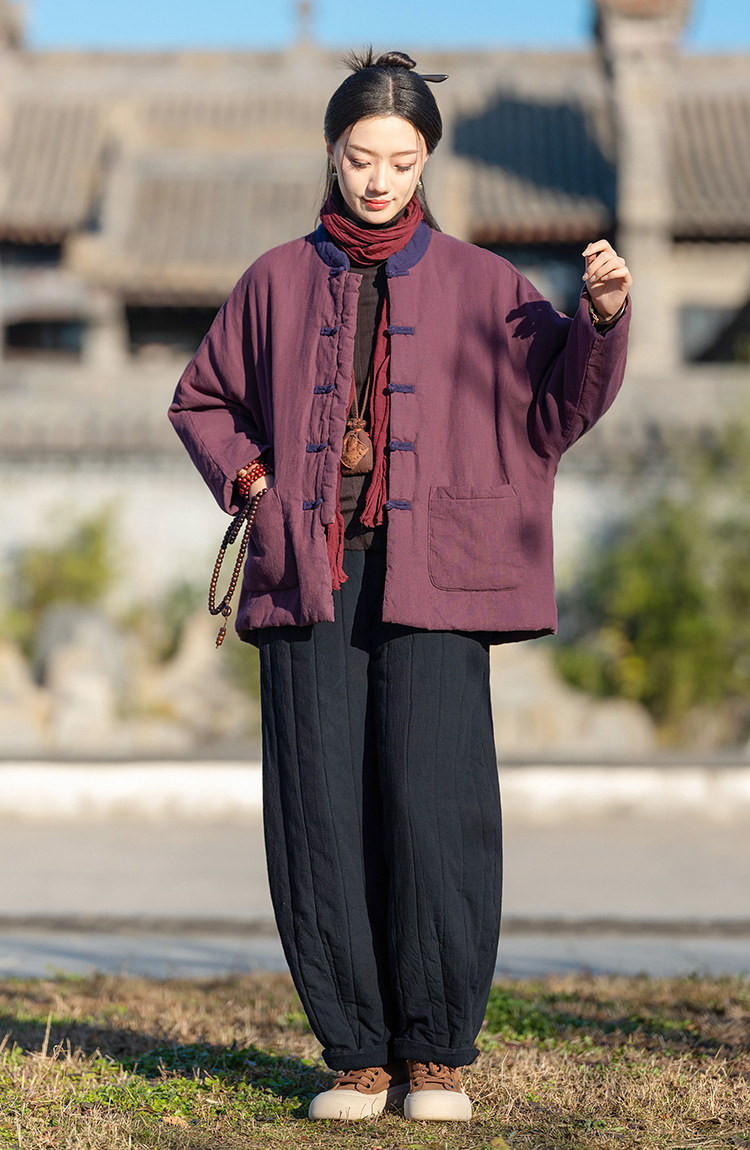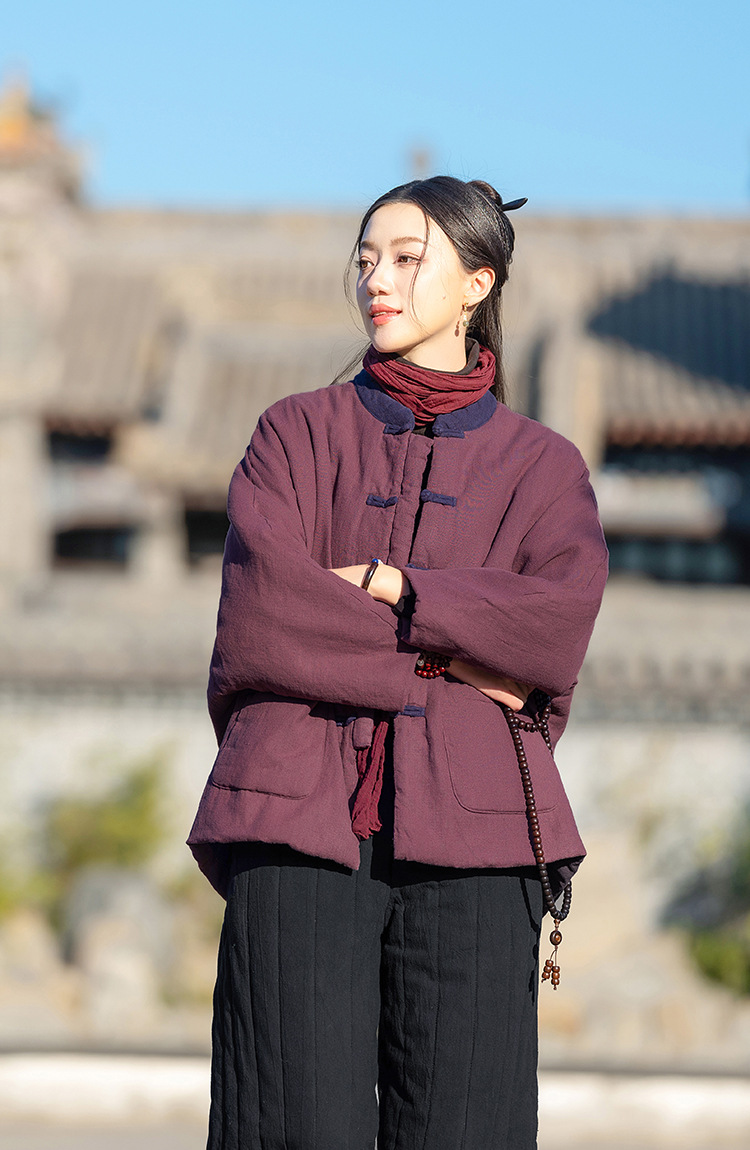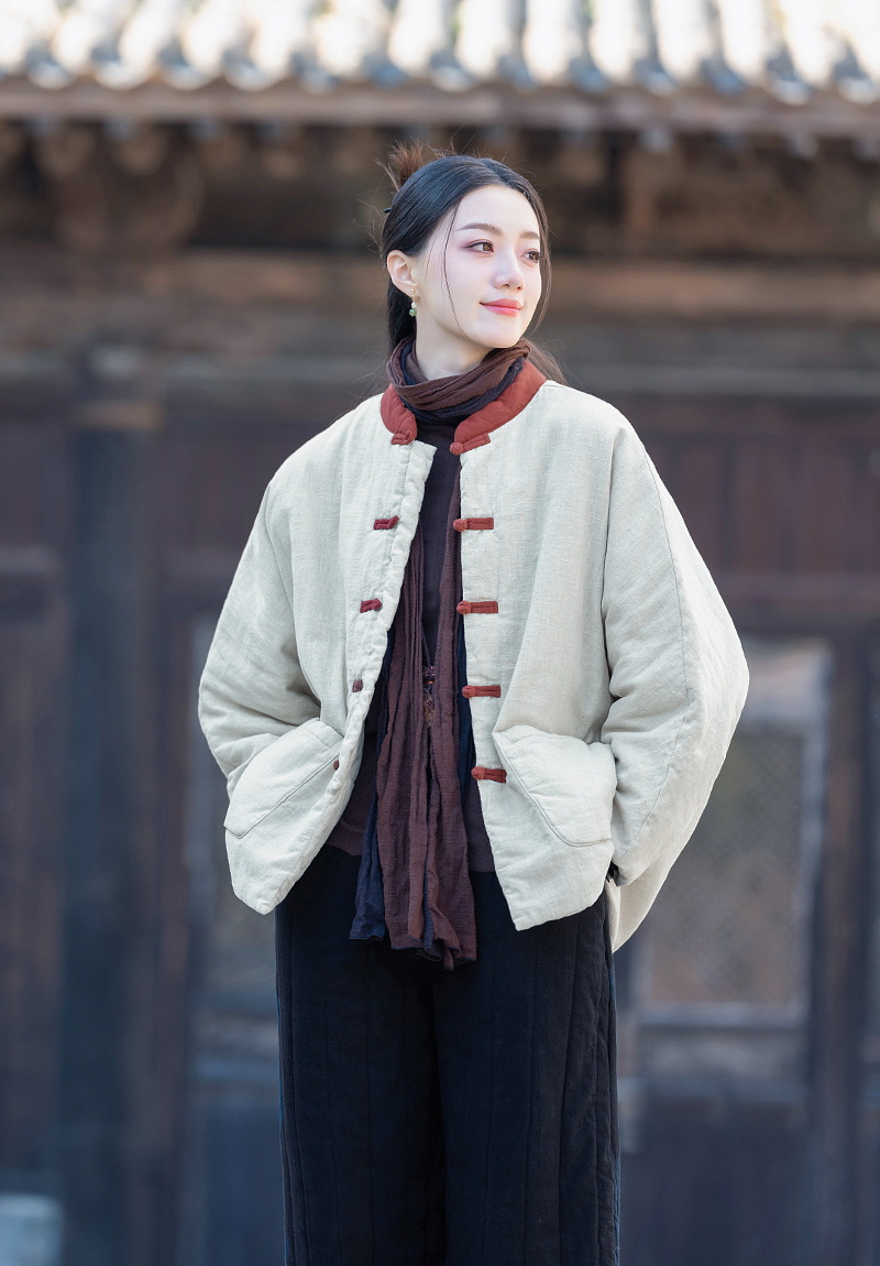 25冬の綿と麻の婦人服、新しい国民風、新しい中国風、多用途の文学と芸術のラミー綿の服、ボタン付きの短い綿の服