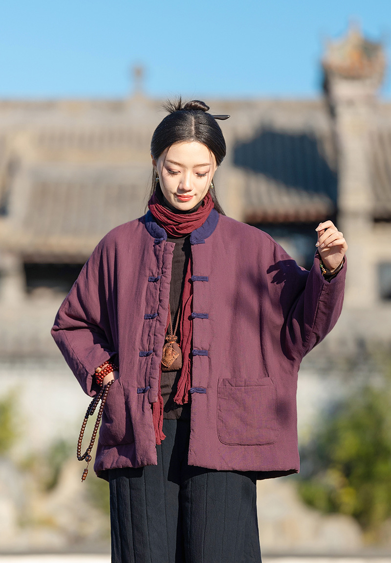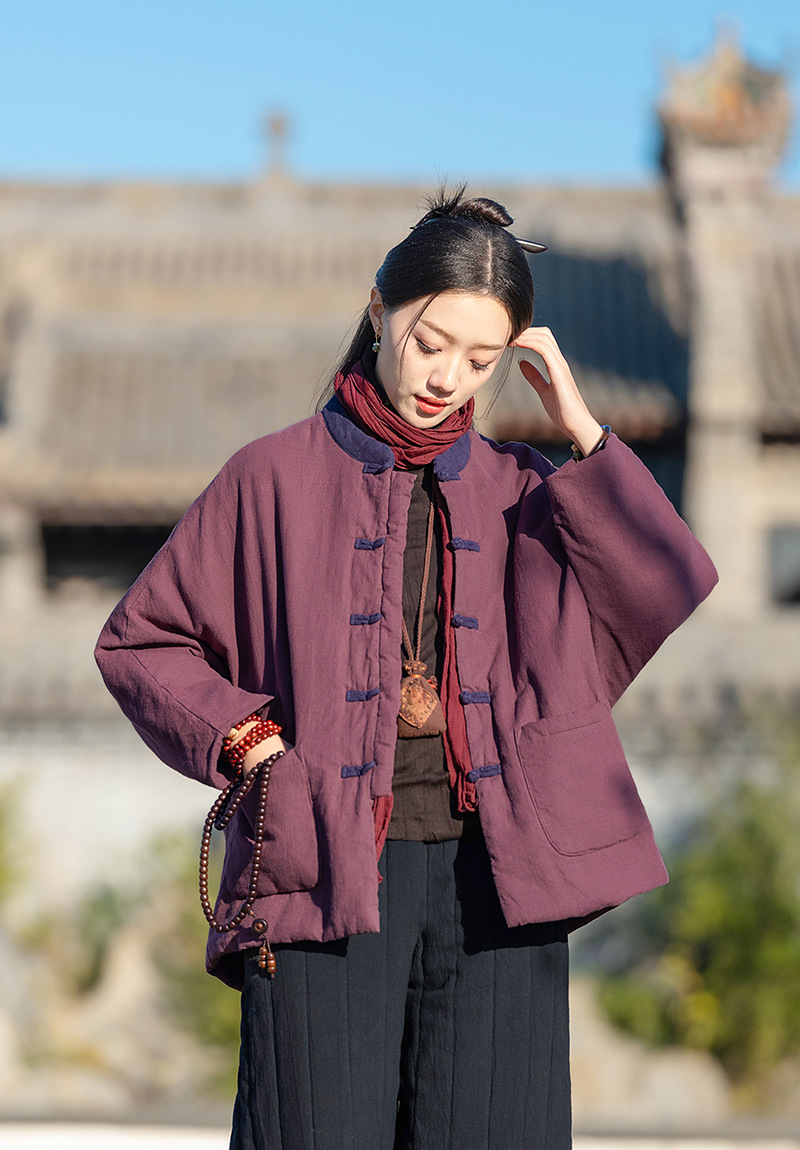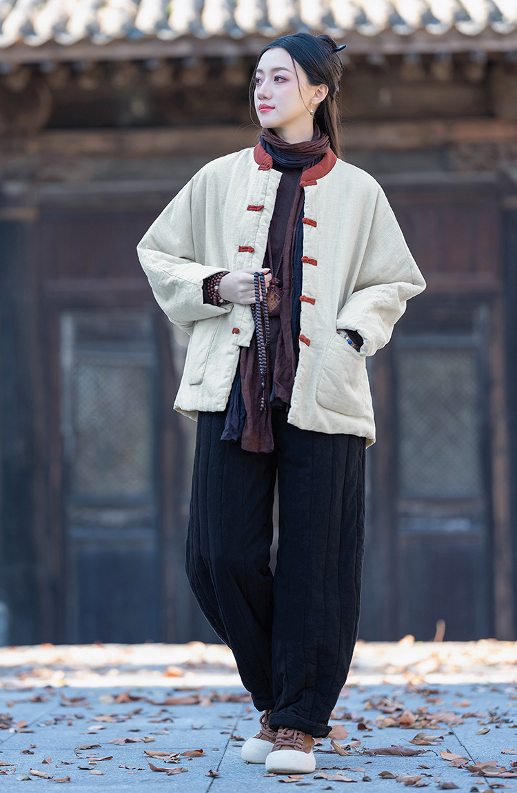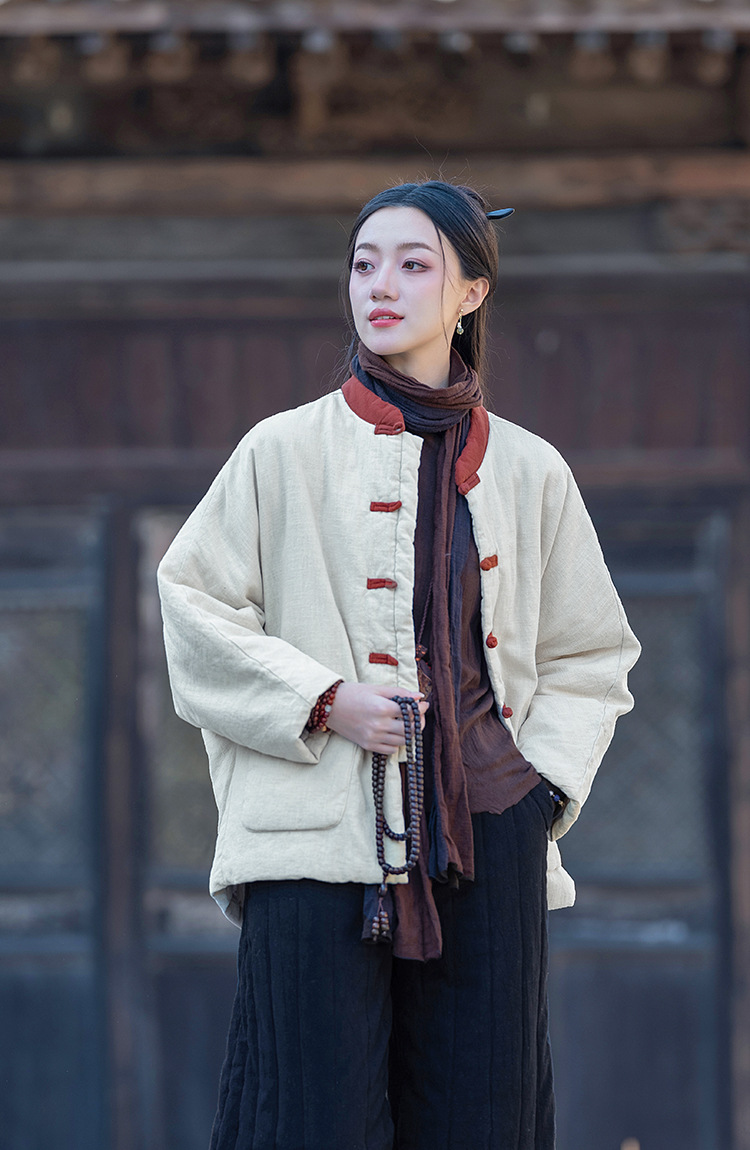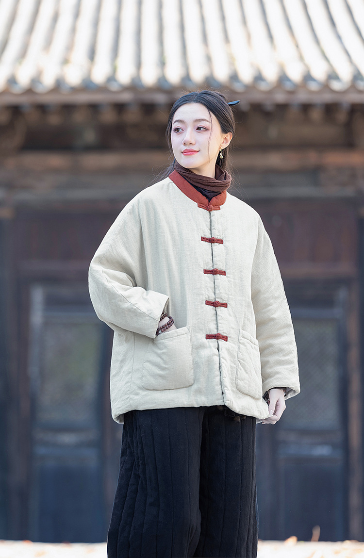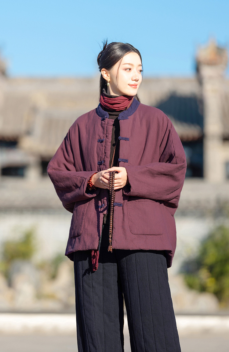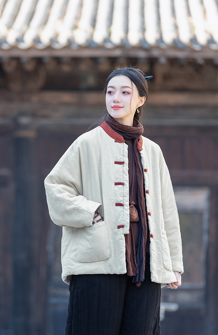 25冬の綿と麻の婦人服、新しい国民風、新しい中国風、多用途の文学と芸術のラミー綿の服、ボタン付きの短い綿の服