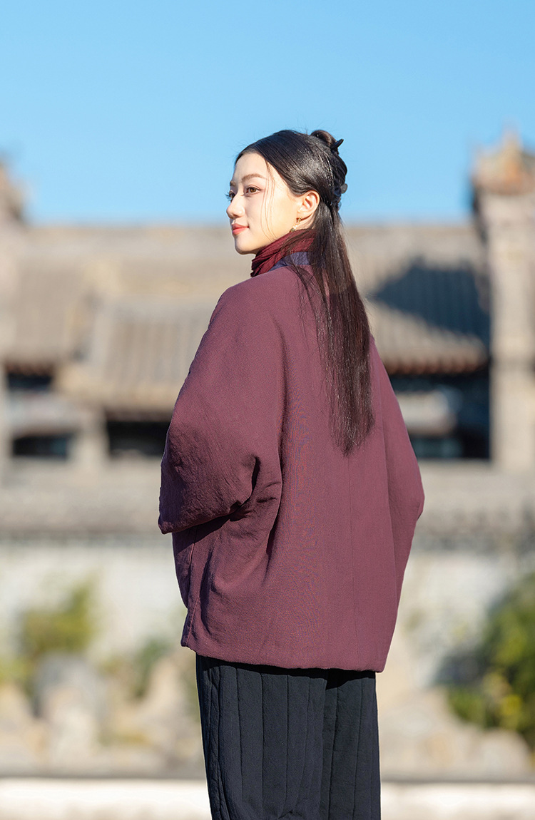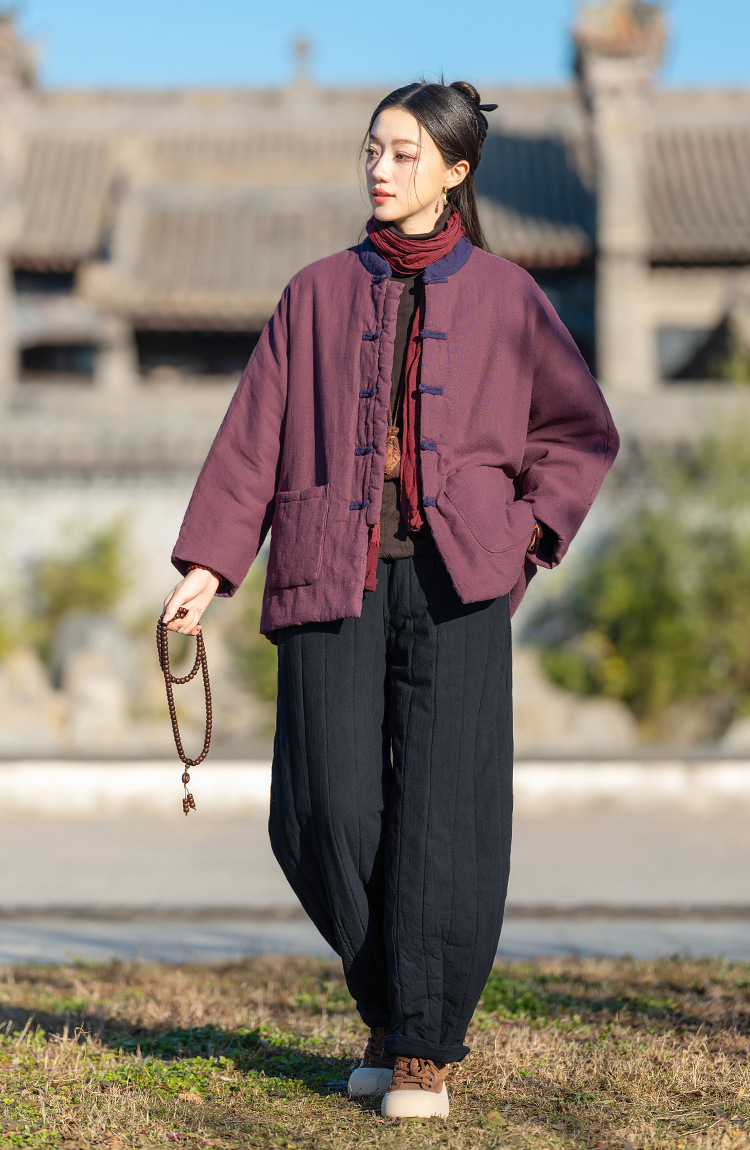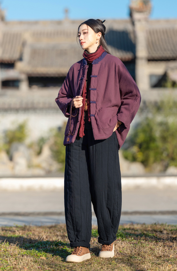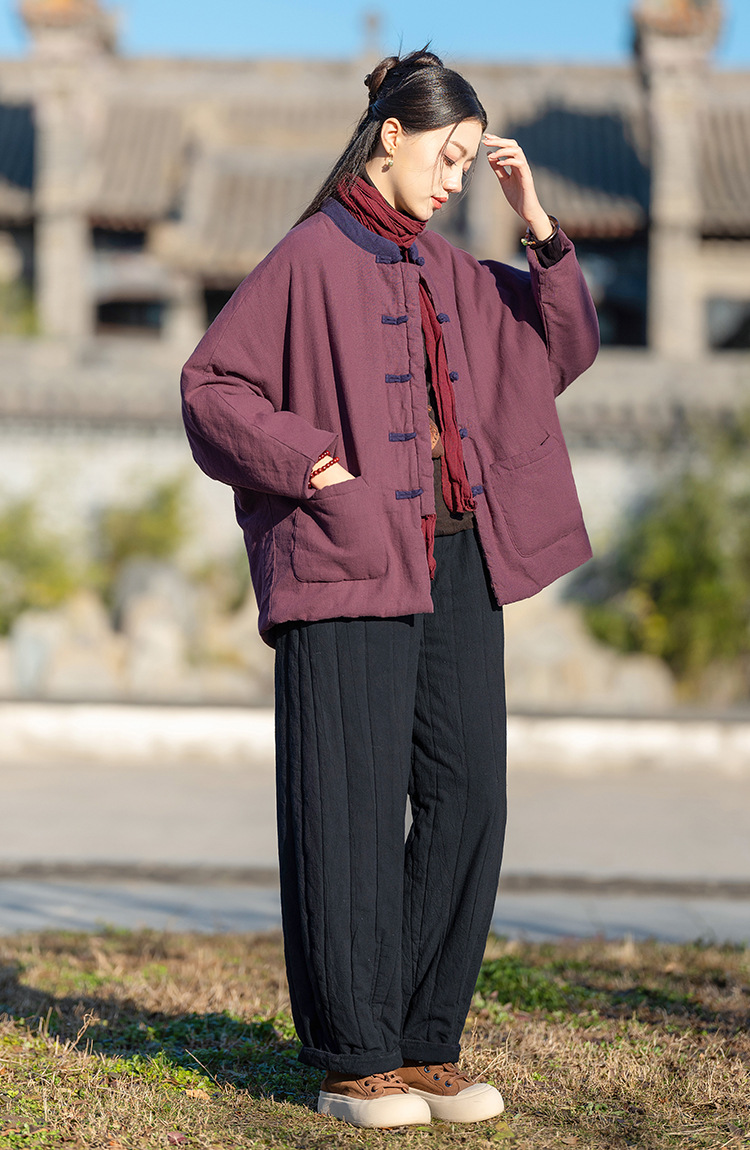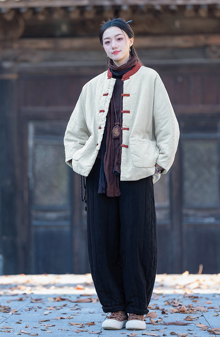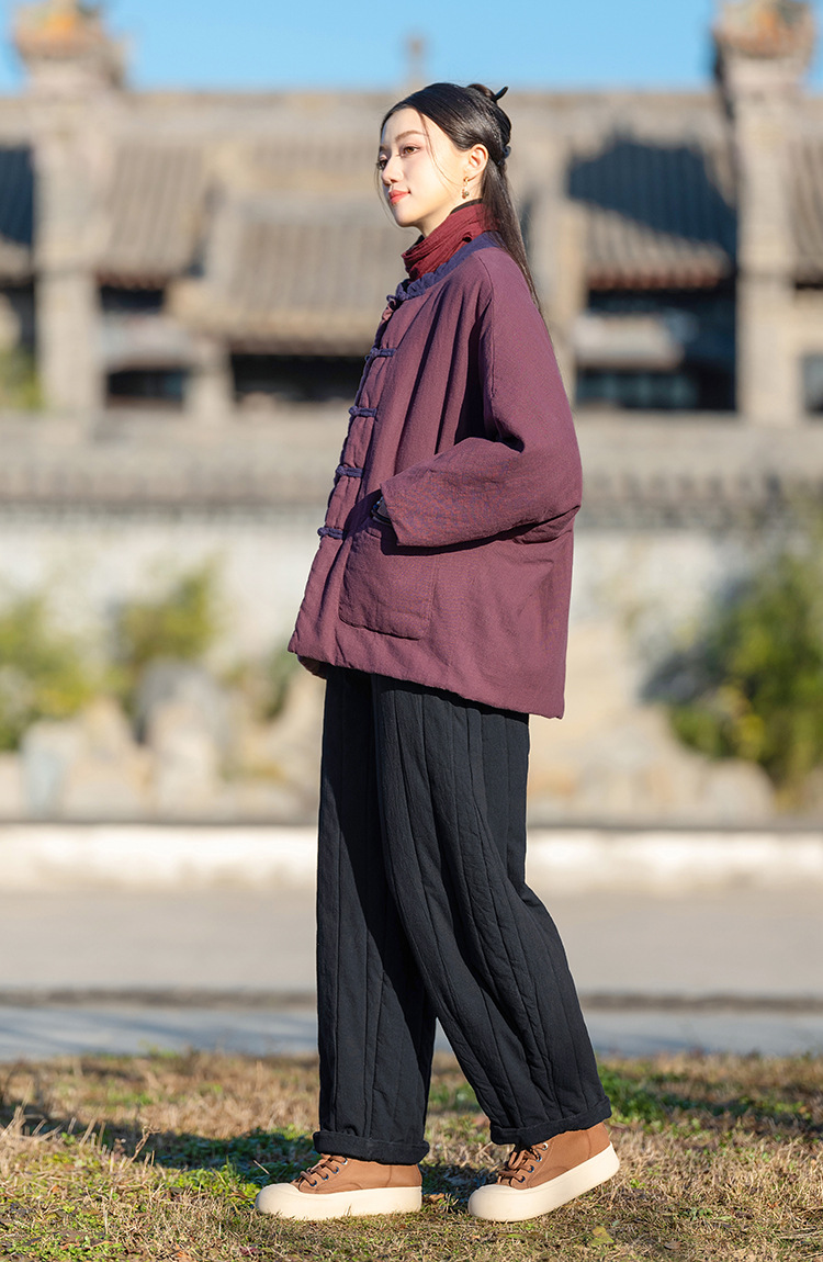 25冬の綿と麻の婦人服、新しい国民風、新しい中国風、多用途の文学と芸術のラミー綿の服、ボタン付きの短い綿の服