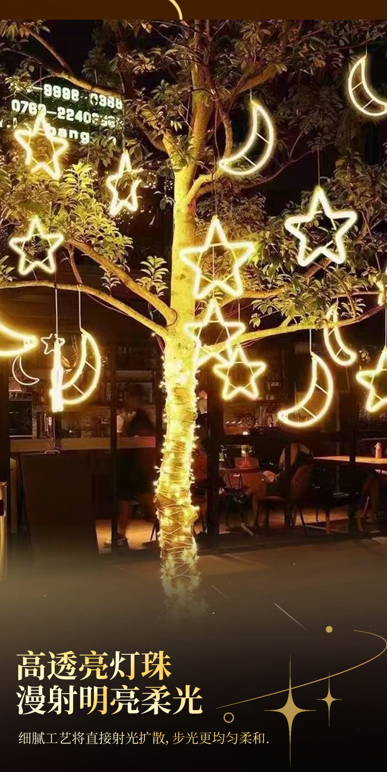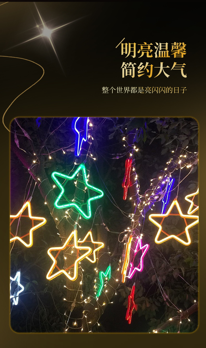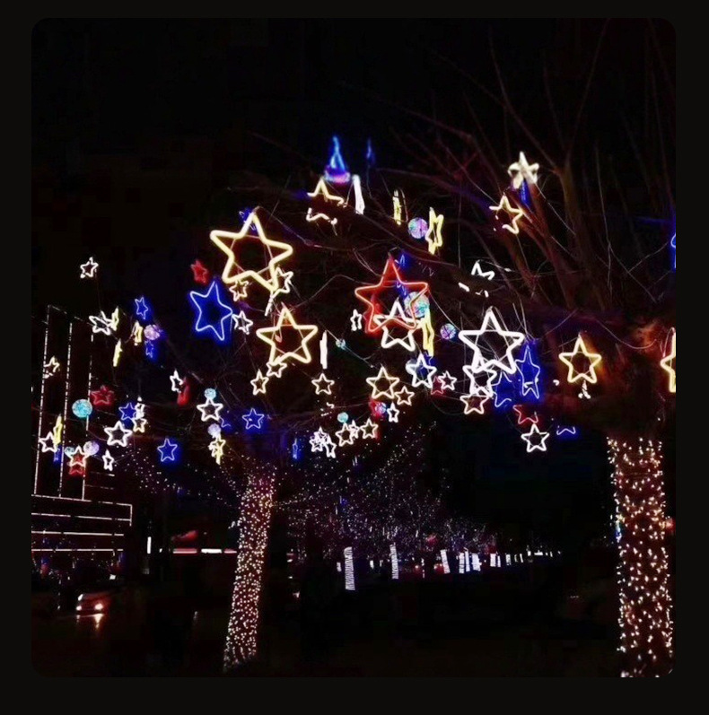 LED五芒星灯造形灯祝日屋外掛樹彩灯工事点灯防水新年装飾雪灯