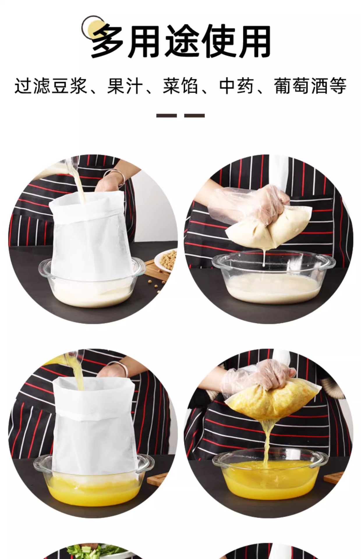 豆浆过滤网袋食品过滤网挤馅袋葡萄果汁豆浆过滤网厨房豆浆过滤袋