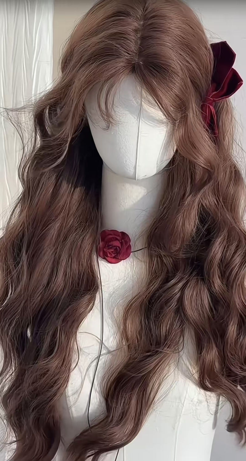 かつらの髪型 長い巻き毛は前髪を平らにしたり、斜めにしたりすることができます