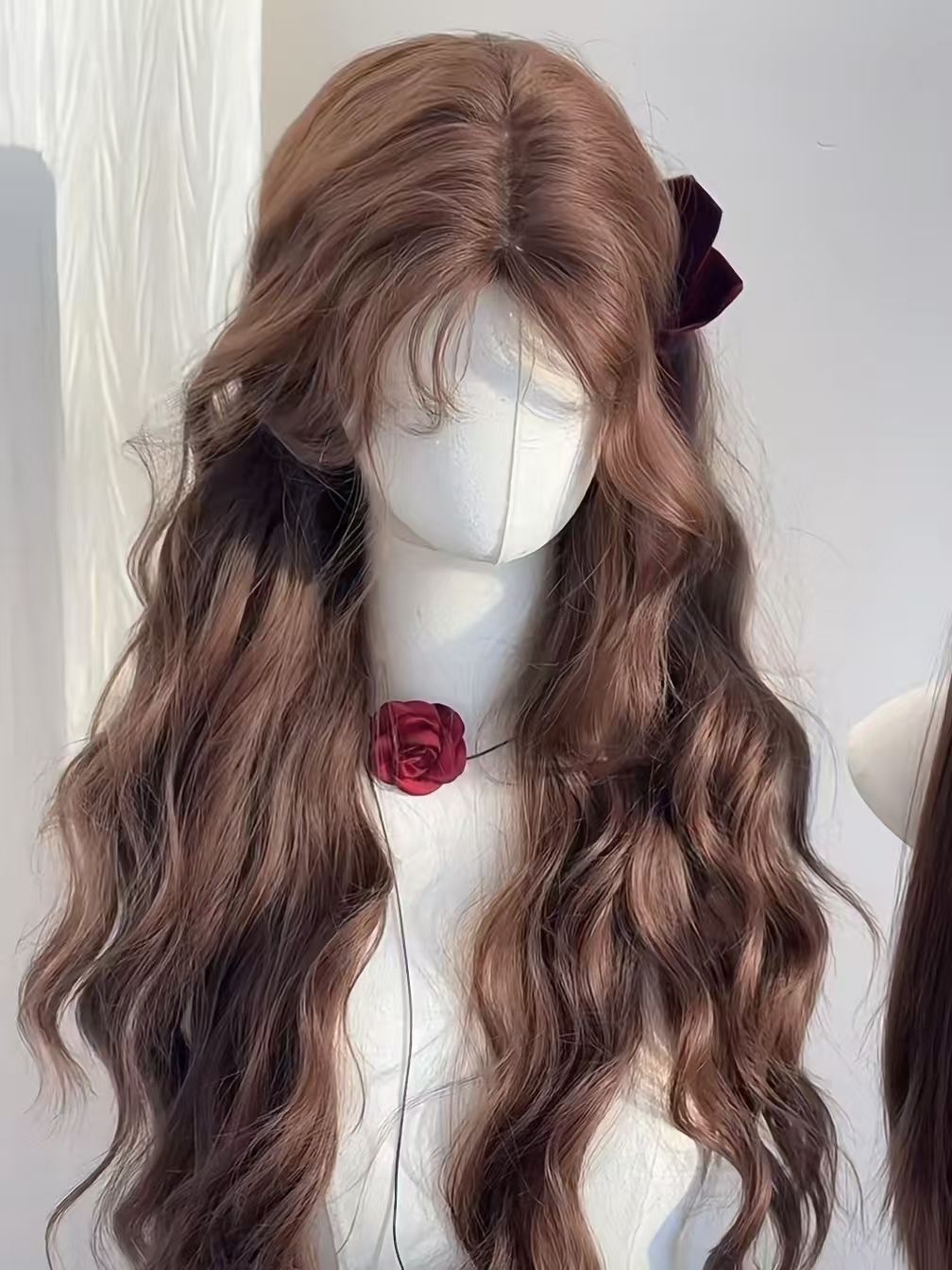 カミロ・キャラメル赤茶色かつら女性額レース全頭カバー式水波紋長巻き髪整頂かつら