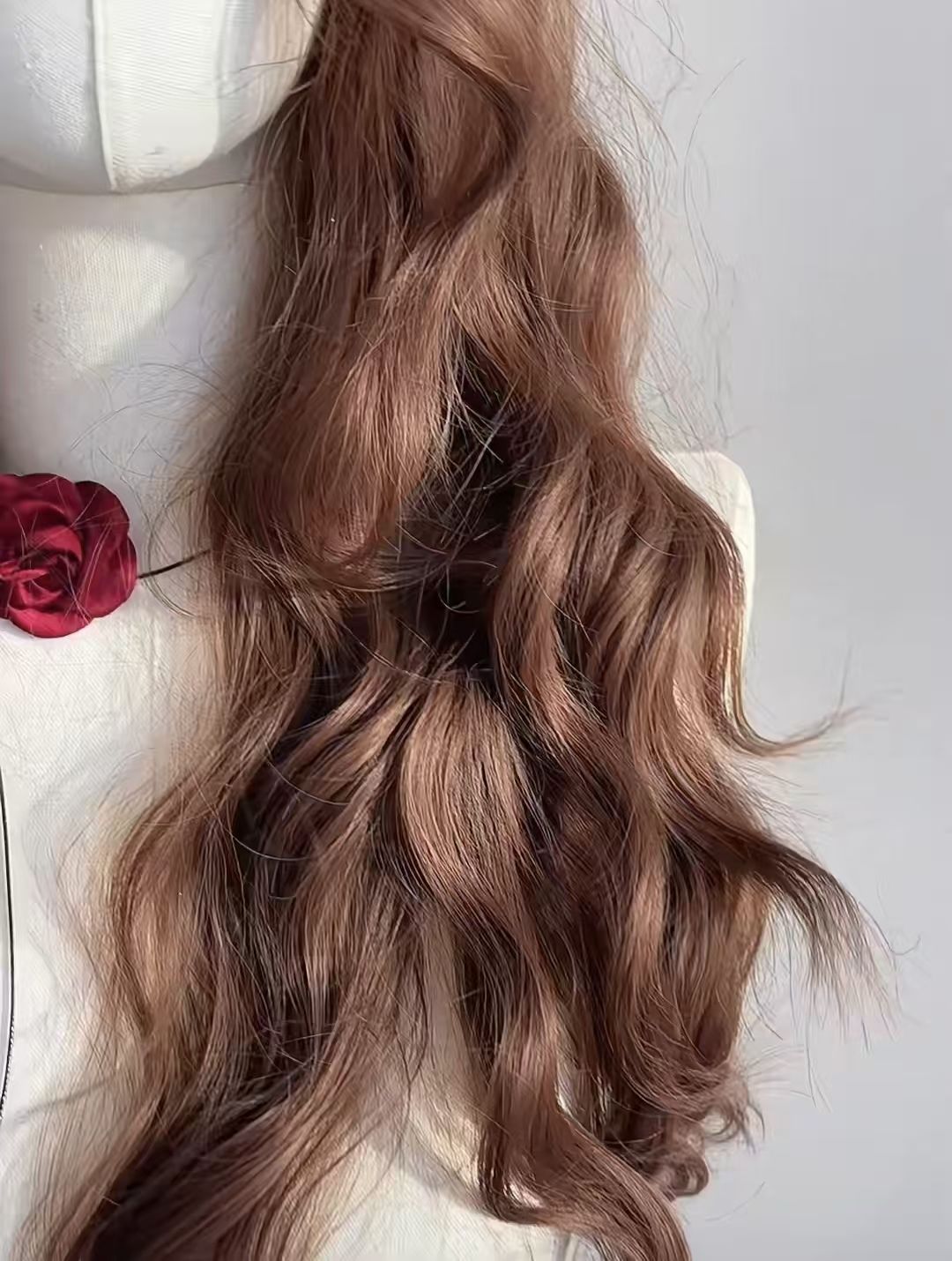 【キャラメル栗】かつら女性秋冬新作栗茶色ウール巻き怠惰感気質ロングカール全頭カバー