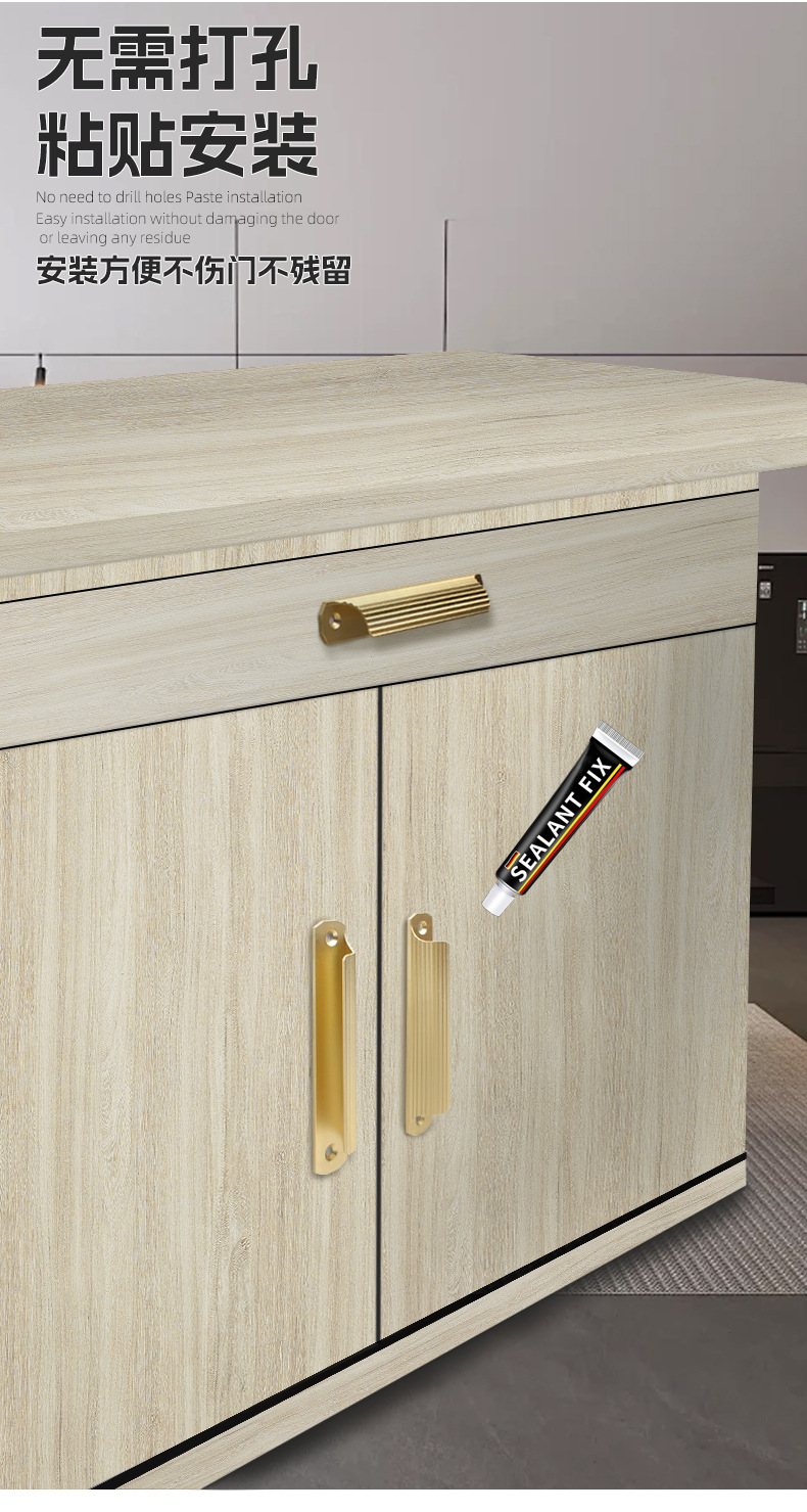 キャビネットのドアの反発器は押してもいいです。取っ手が見えないので、引き出しを弾きます。