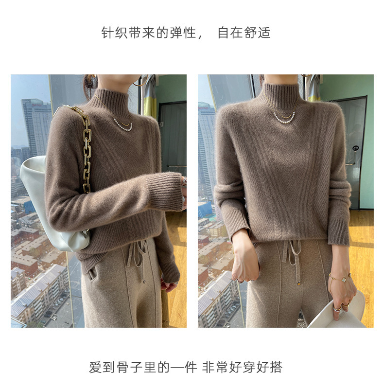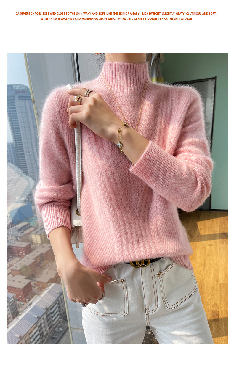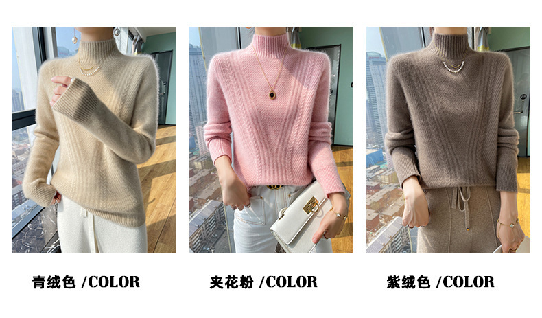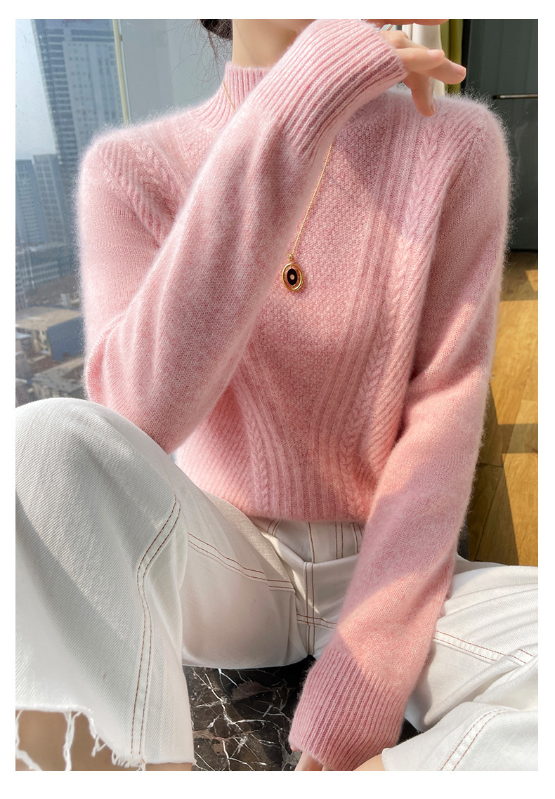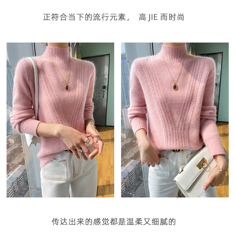 2025秋冬 レディースニットセーター ハーフタートルネックセーター 厚手ツイスト編みインナーセーター レディーストップス 卸売