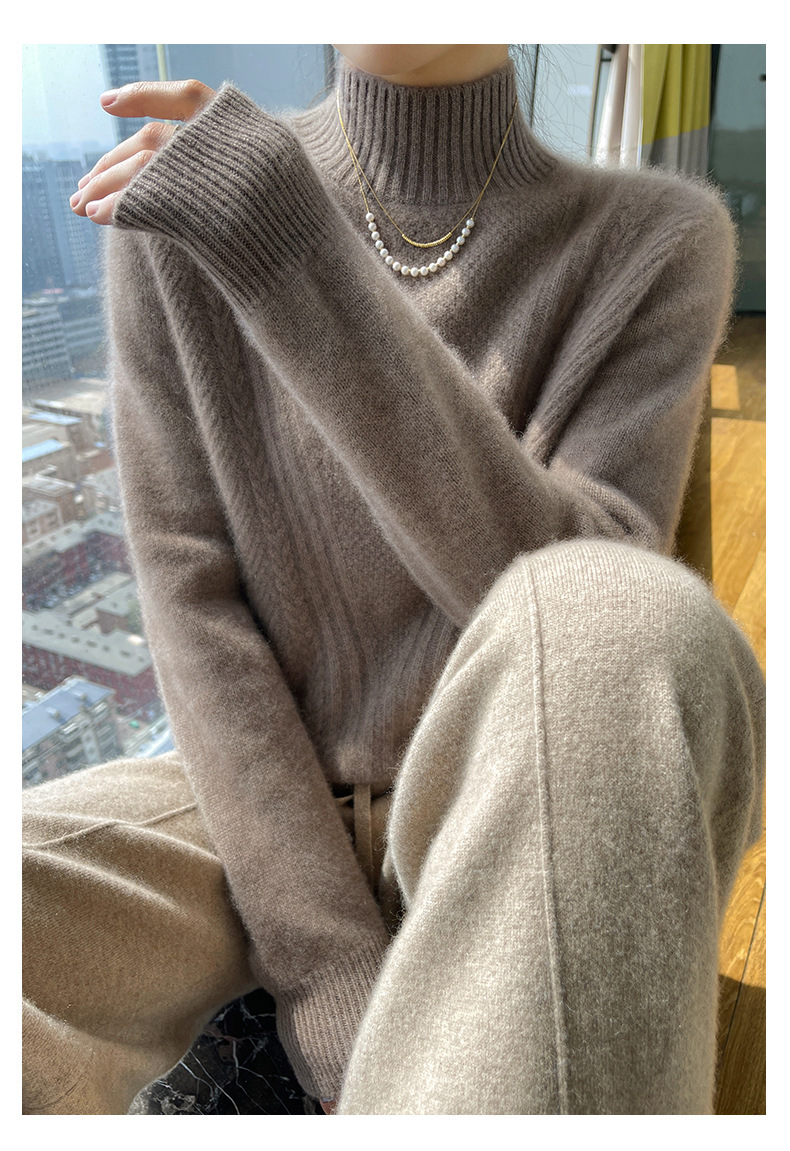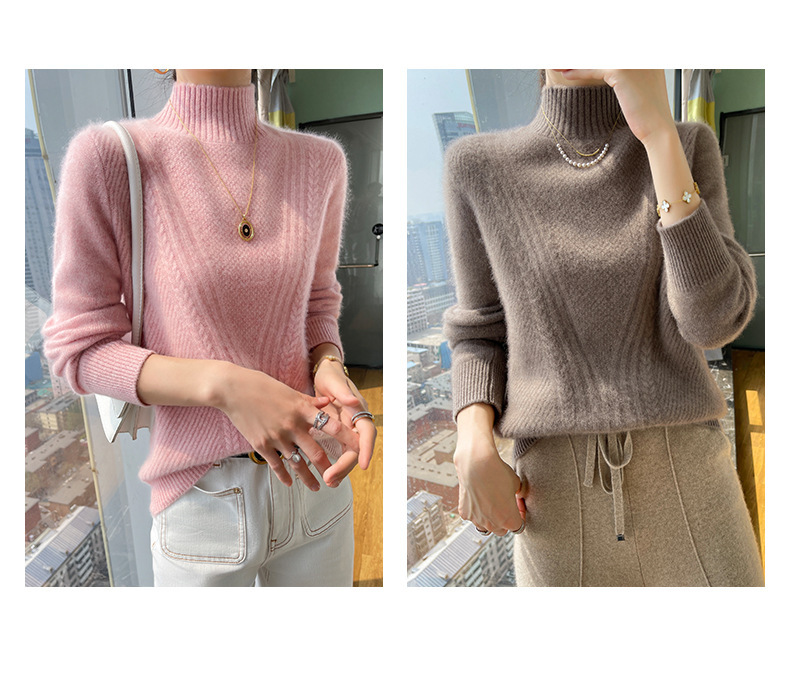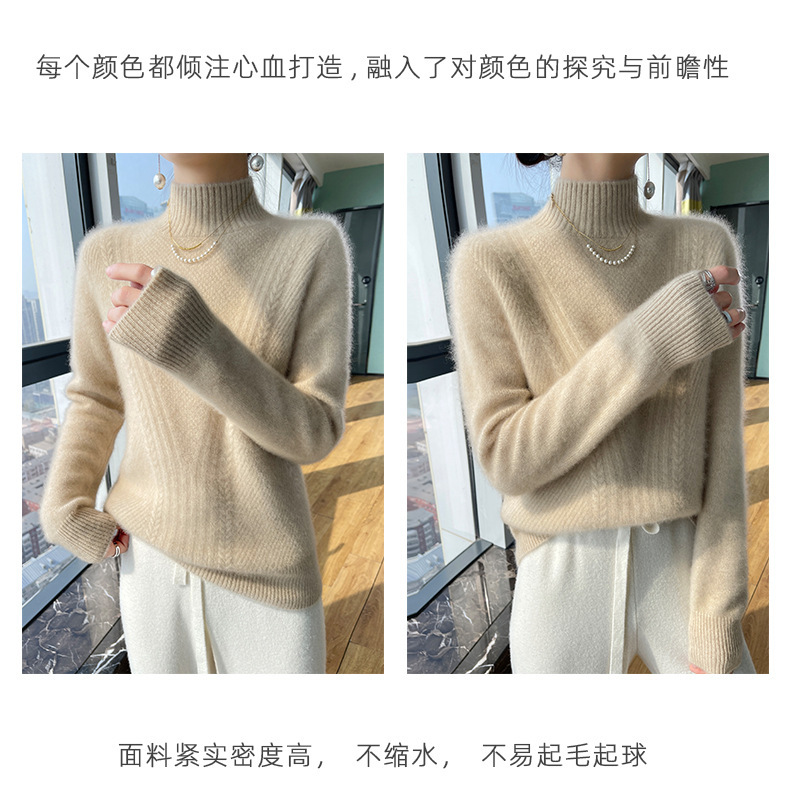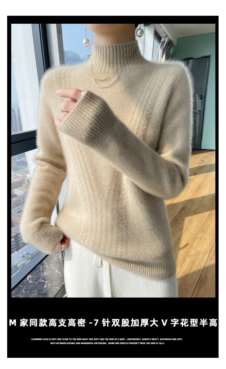 2025秋冬 レディースニットセーター ハーフタートルネックセーター 厚手ツイスト編みインナーセーター レディーストップス 卸売