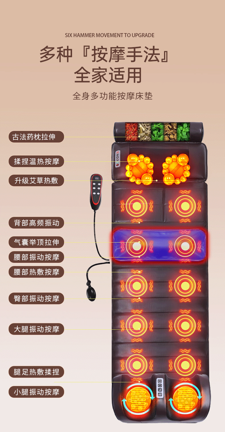 マッサージ枕マットレス全身マッサージ器多機能電動マッサージパッド家庭用腰温湿布振動工場卸売