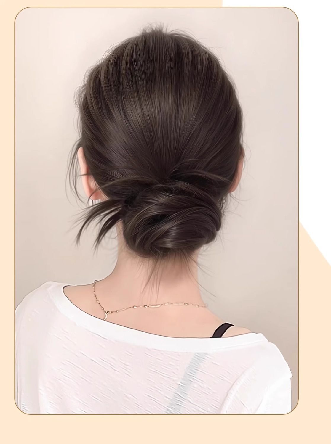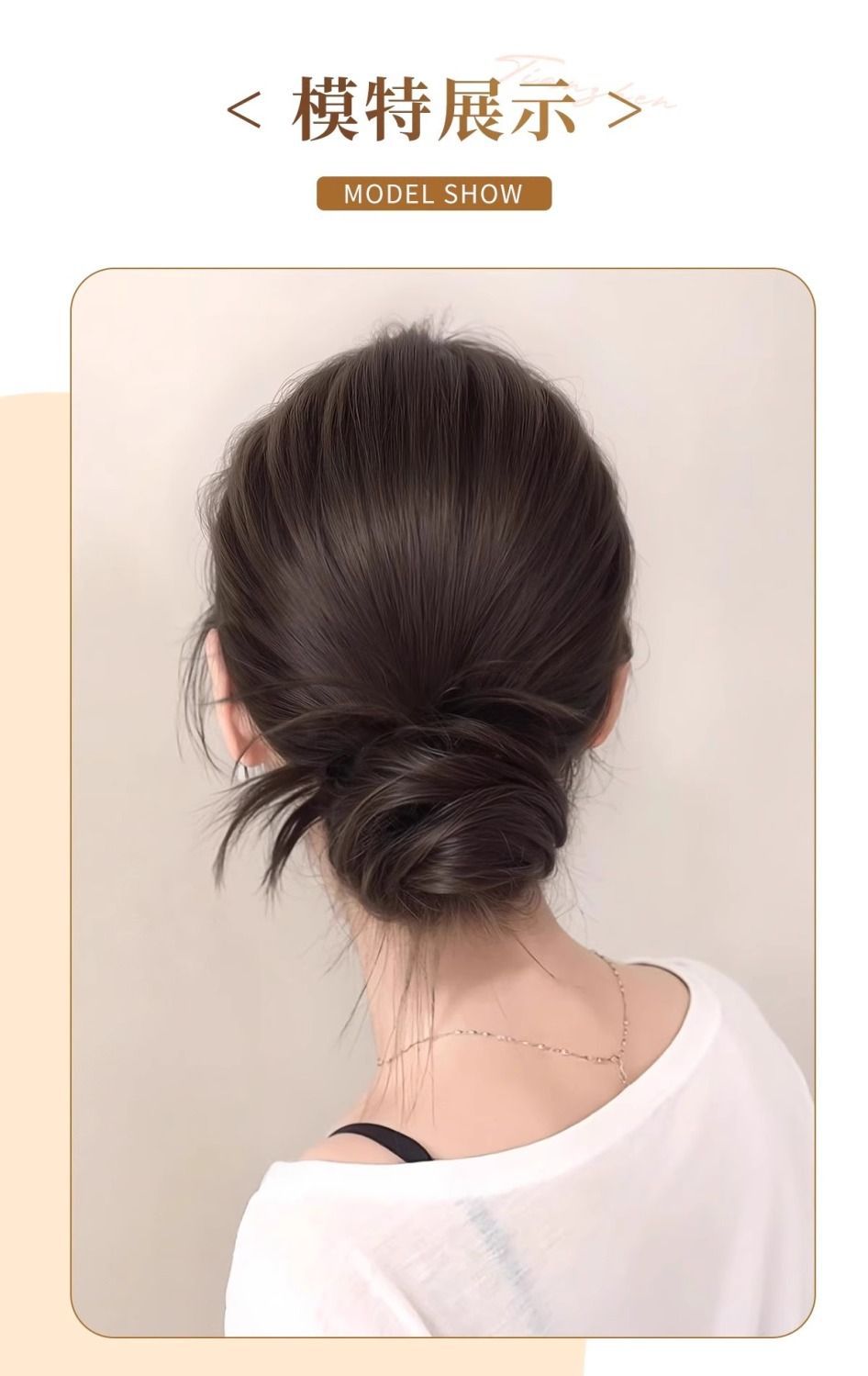 【鳥の巣のお団子の頭】お団子の頭のかつらの髪の輪の女性が勝手に収縮して髪の神器のシミュレーションの髪のかつらの髪の包みを作ります。