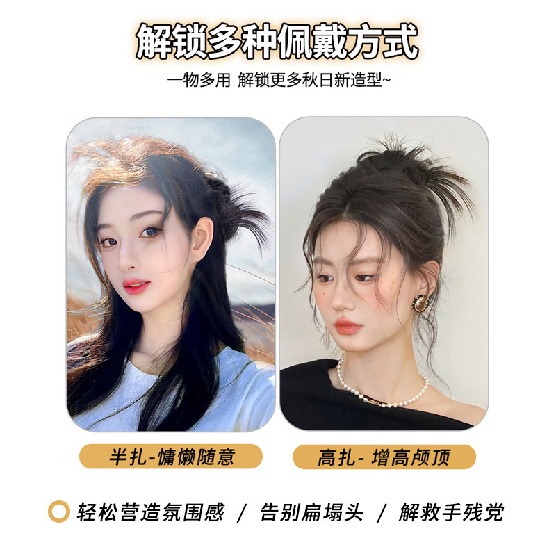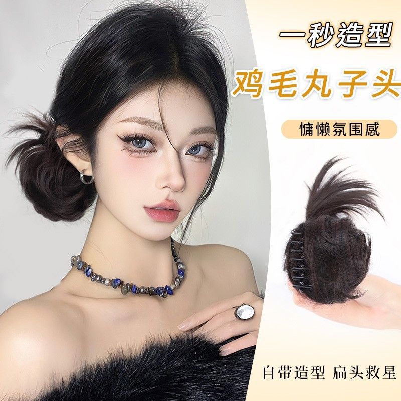 丸子ヘアウィッグヘアゴム女性用鳥の巣型花芽伸縮式ヘアクリップヘアツール跡が残らない増毛自然なふんわりヘアウィッグパック