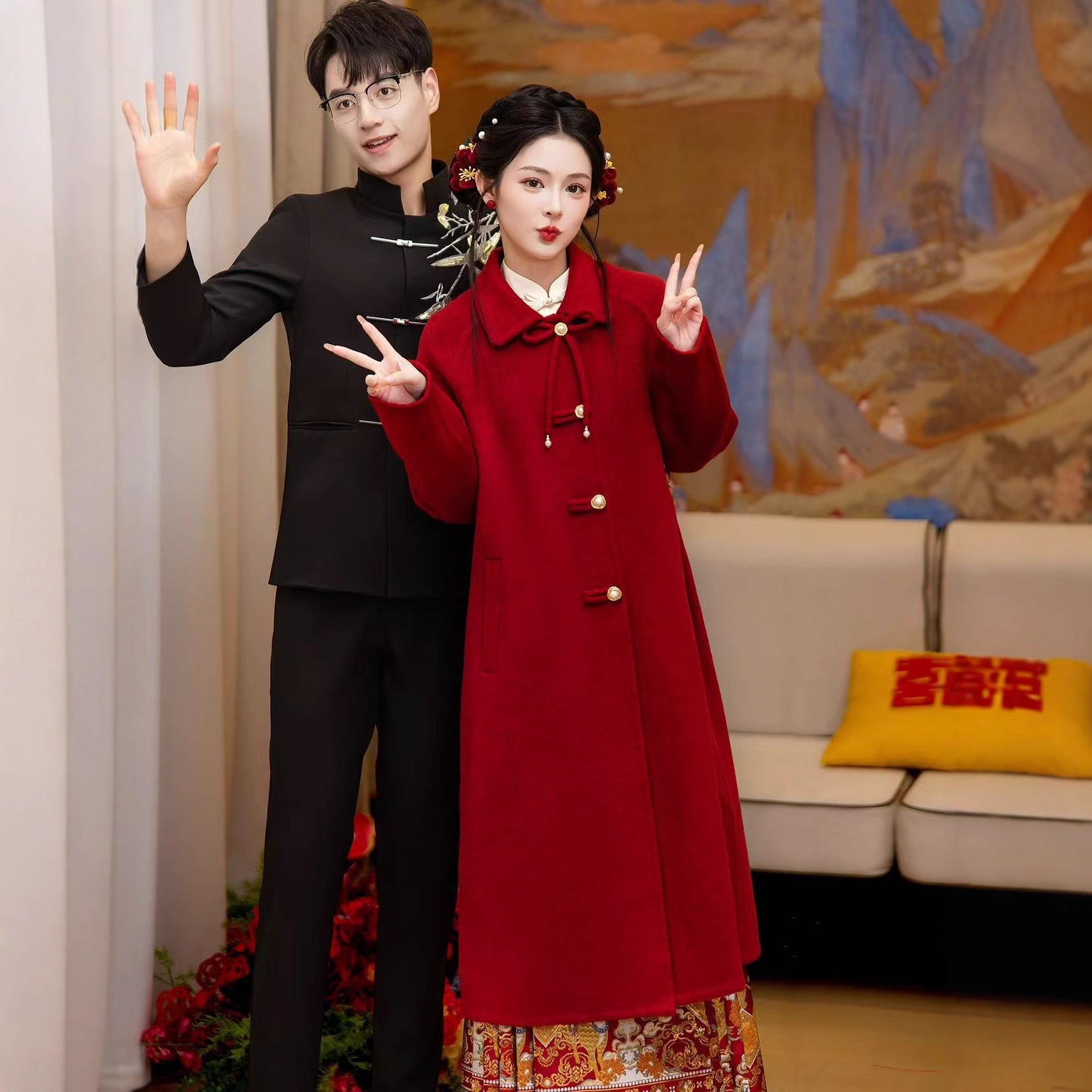 现货小个子新中式红色订婚敬酒服新娘呢子外套秋冬大衣中长款