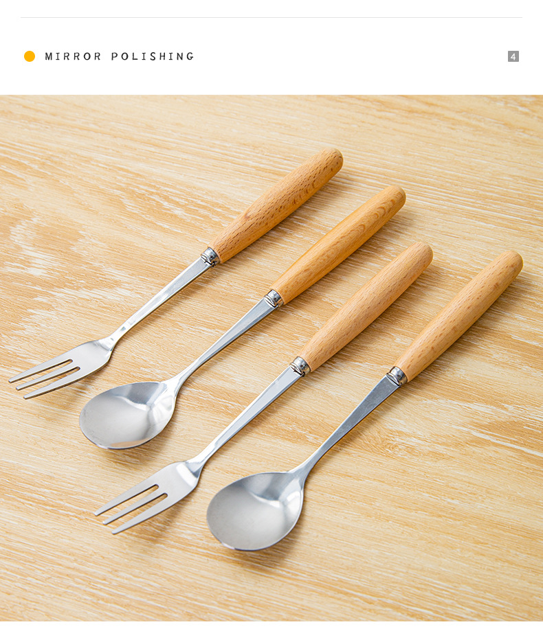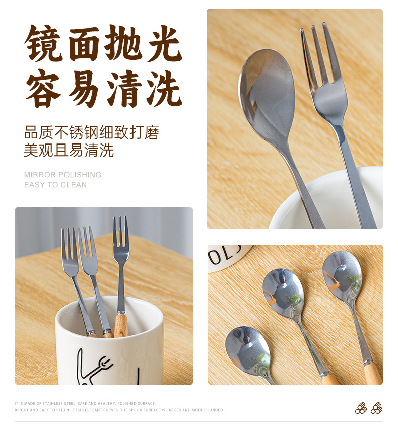 日本式クリエイティブステンレスナイフフォークスプーンケヤキ柄ステンレス食器木柄家庭用ステンレススプーンフォーク