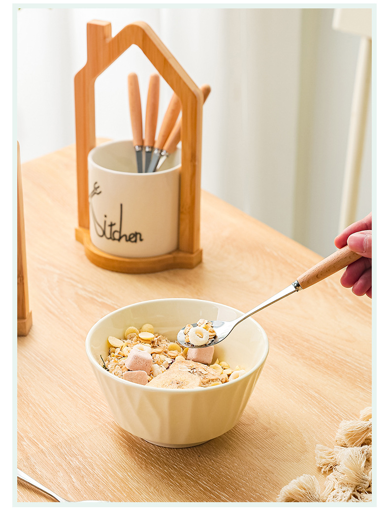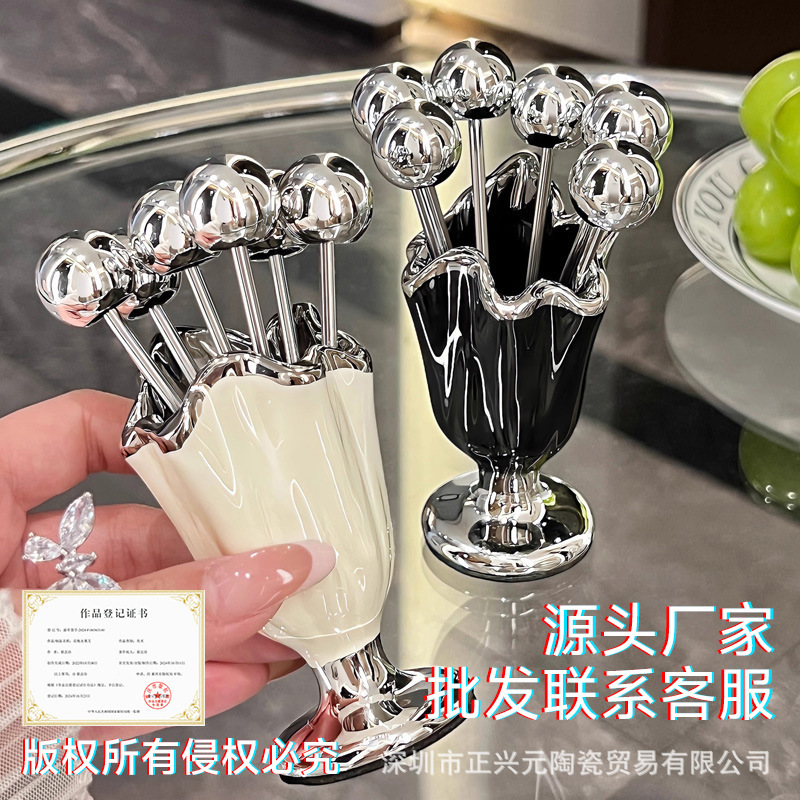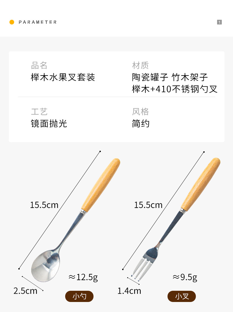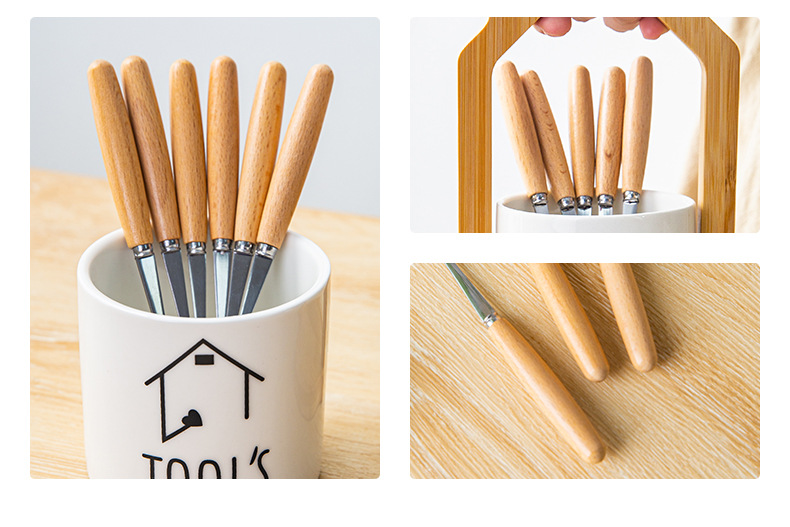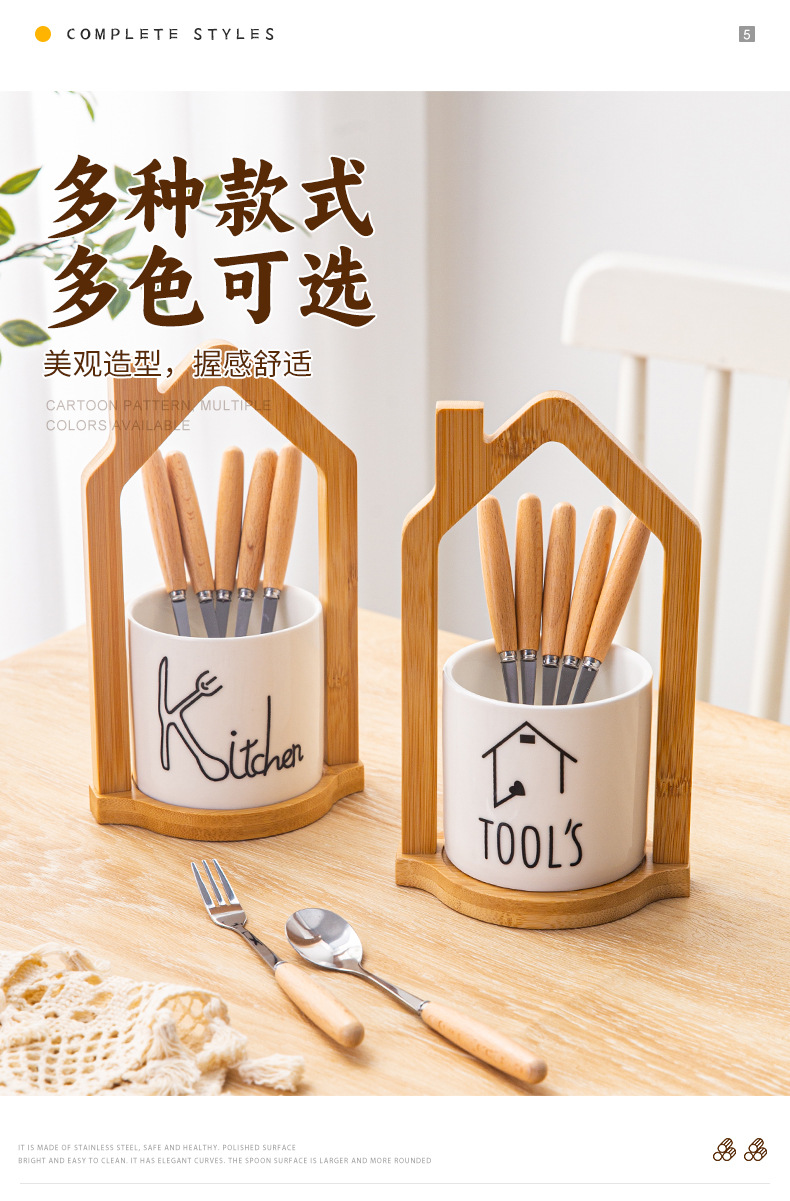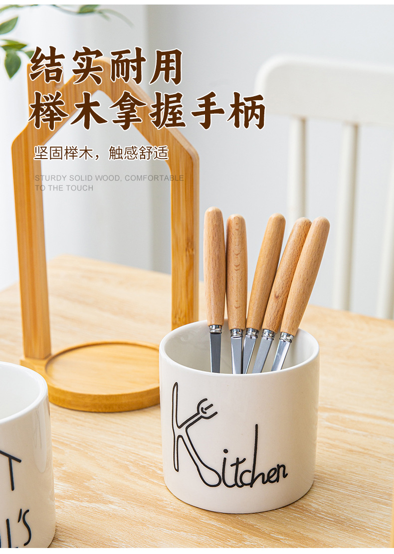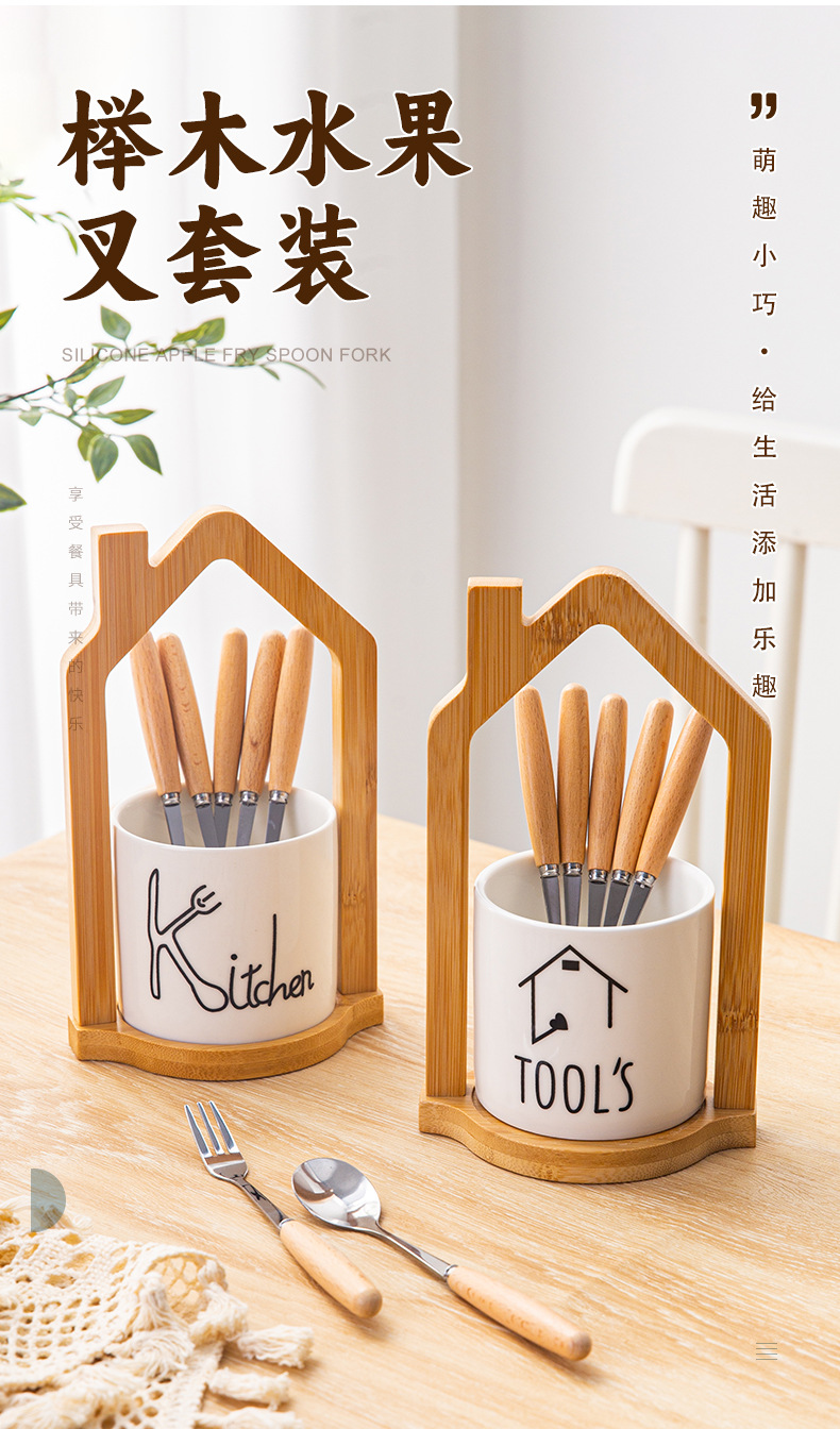 日本式ケヤキ果物フォークセット創意高颜値ステンレスフォークスプーン陶磁器収納缶セット卸売り
