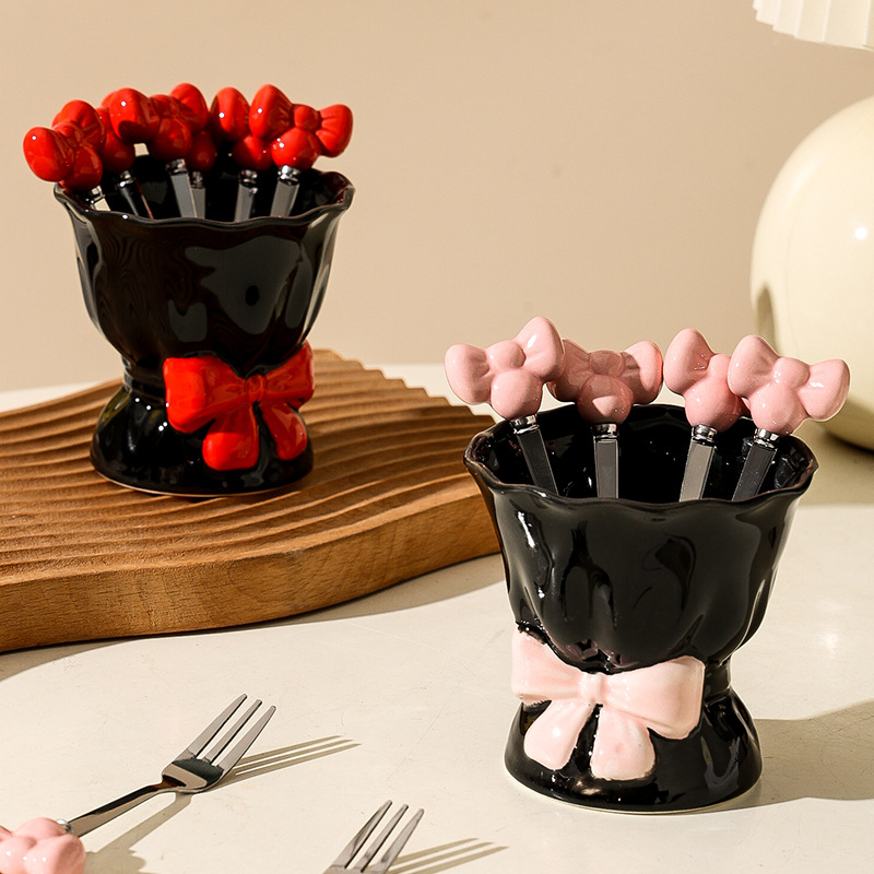 オリジナルの蝶結びが可愛い果物とフォークが精巧で、高い顔をしています。