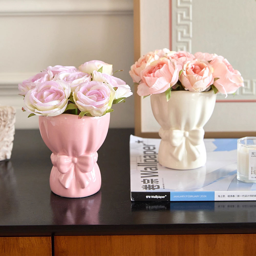 手捧花束陶瓷花瓶高级感仿真花假花家居装饰客厅玄关插花餐桌摆件