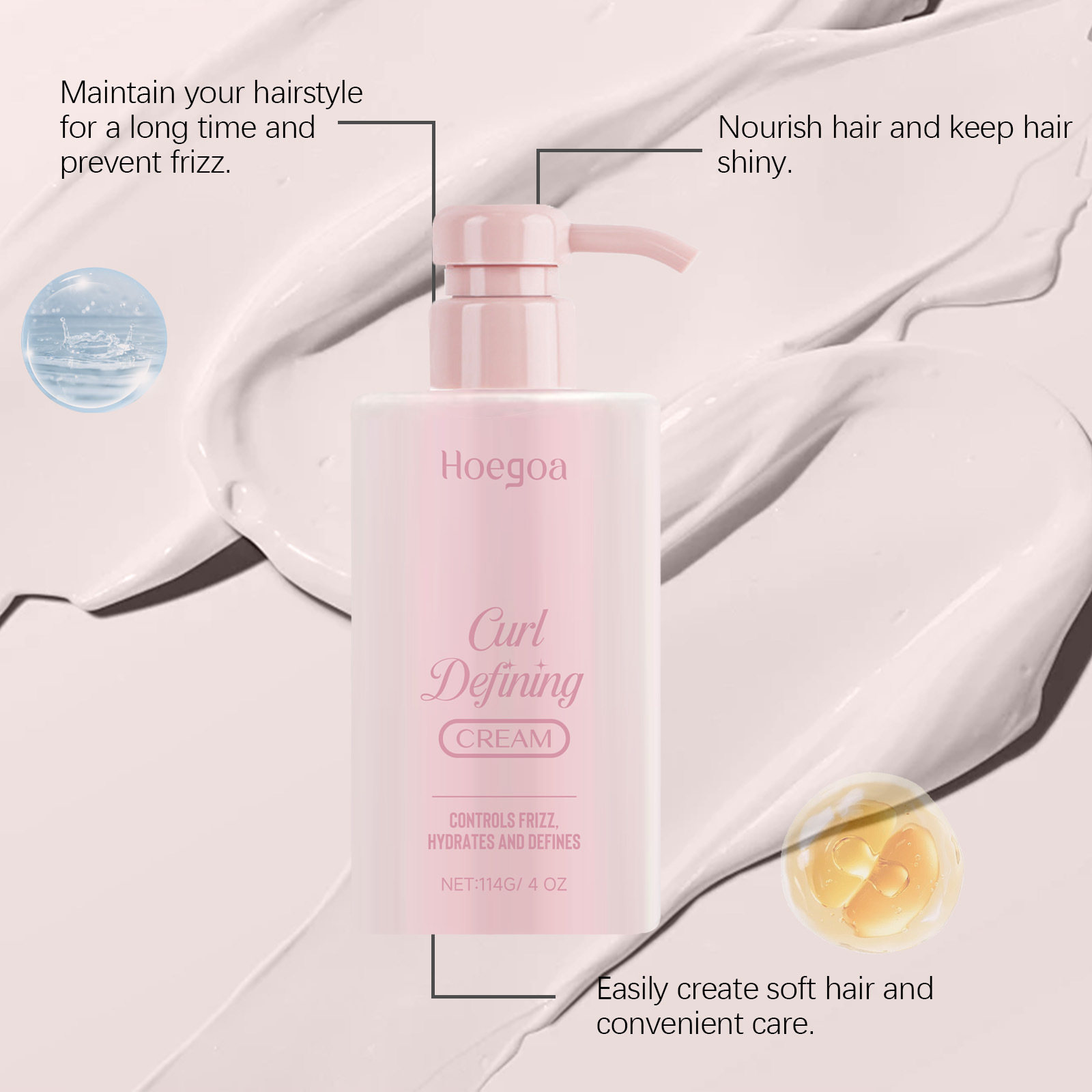 HOEGOAカールケアセットクリーム前髪カールスタイリングナチュラルふんわり光沢感あり髪のセットクリーム