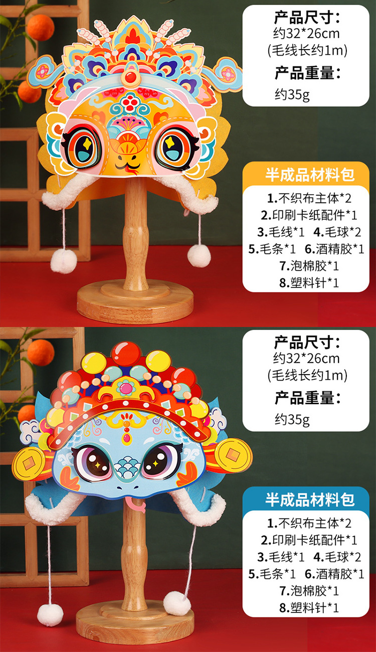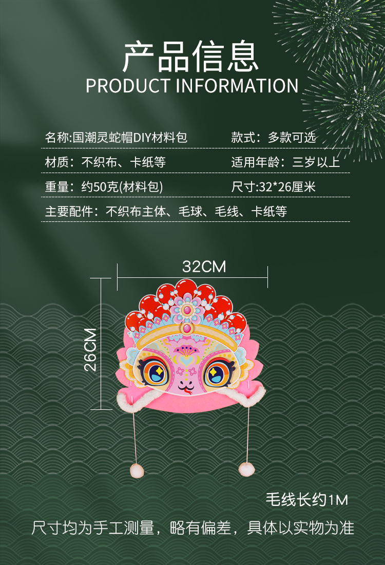 2025新型新年子供親子手作りdiy材料包蛇年国潮霊蛇帽子帽子旧正月