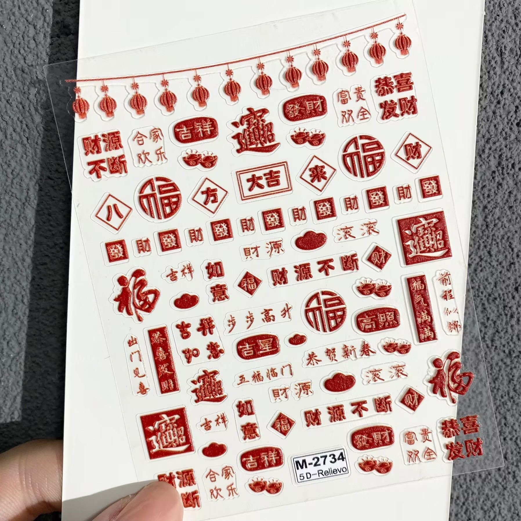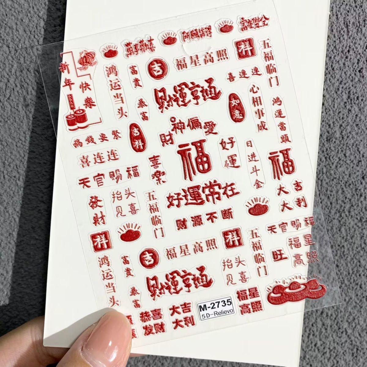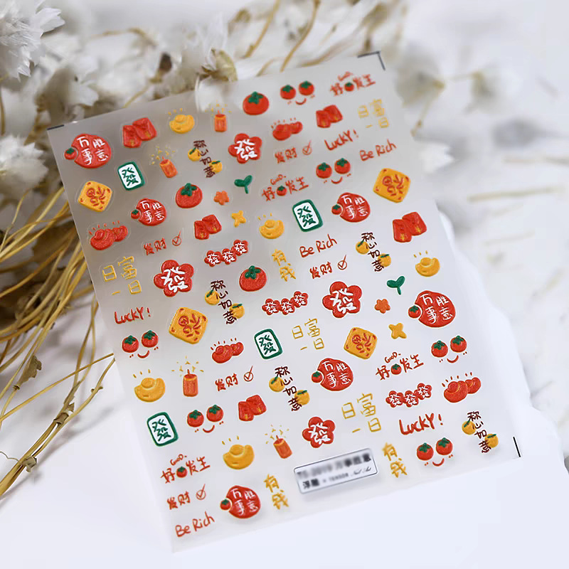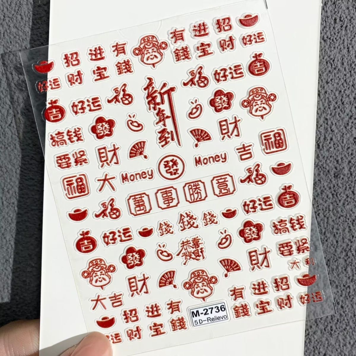 新春发财美甲贴纸浮雕暴富大吉大利指甲贴纸笔杆水杯相机装饰背胶